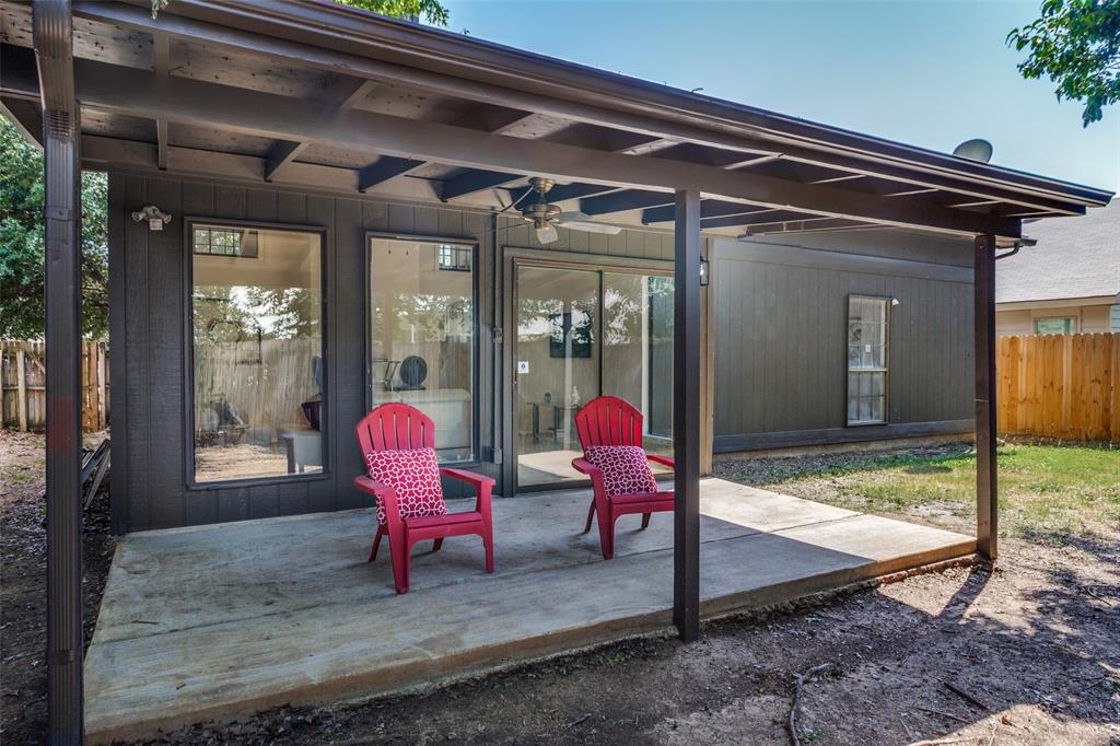 The backyard is perfect for entertaining or relaxing, complete with a covered patio and ceiling fan to keep you cool on warm days.
