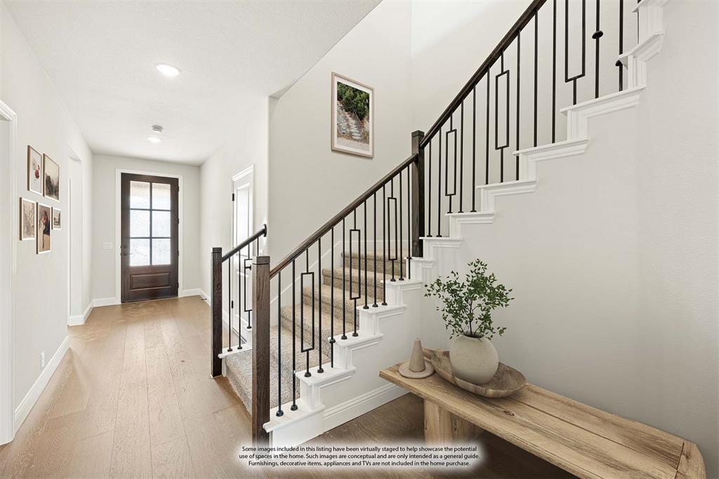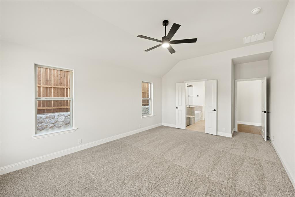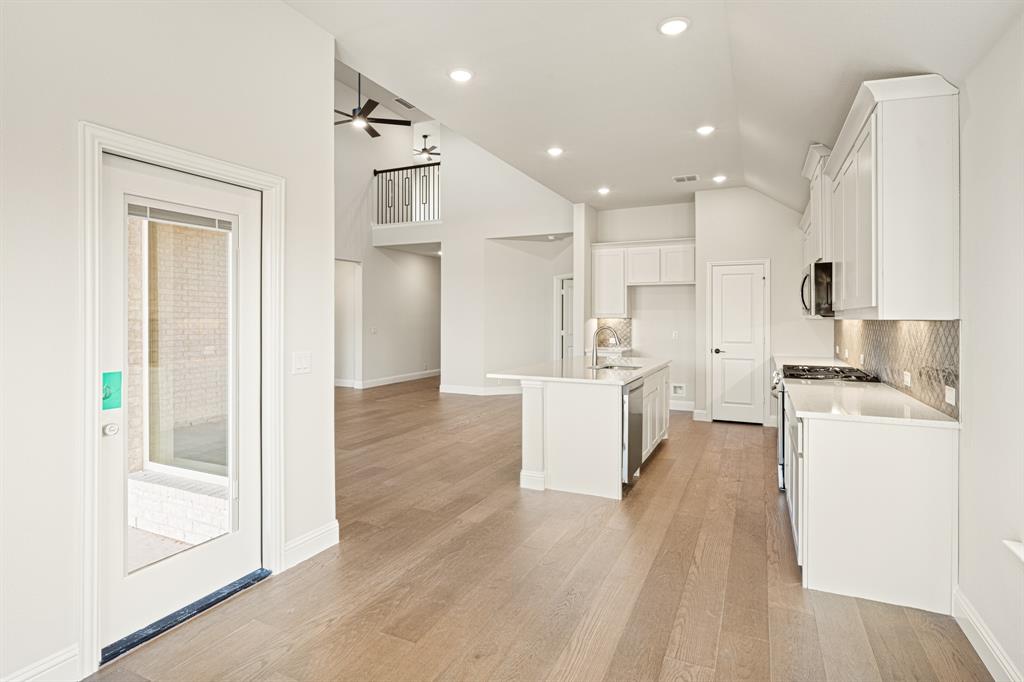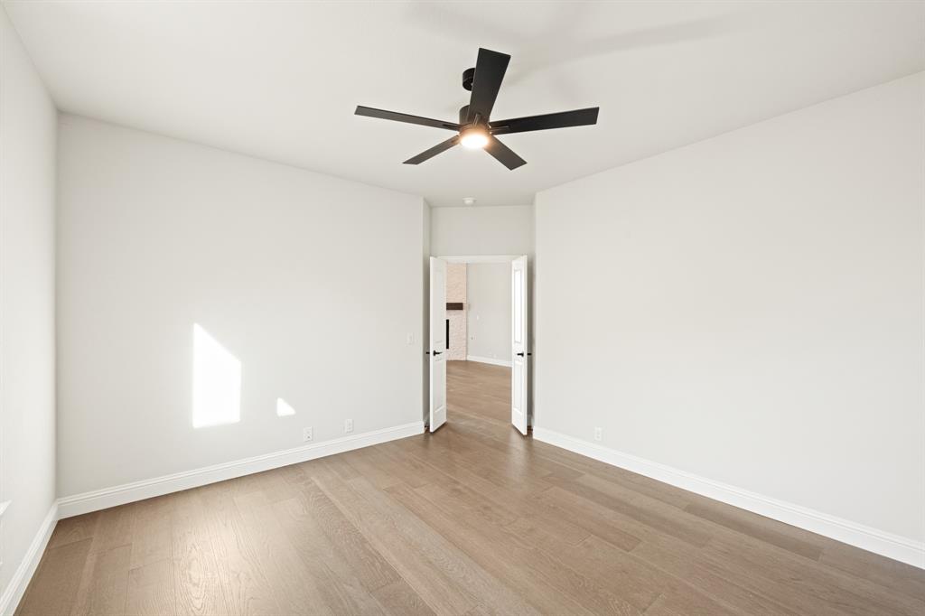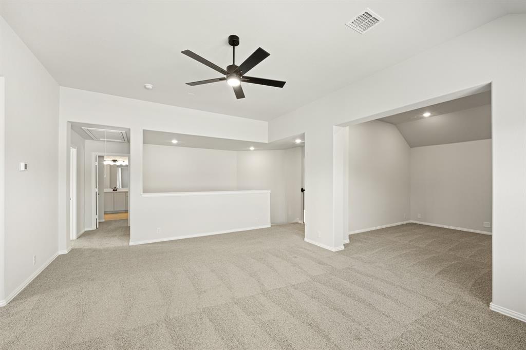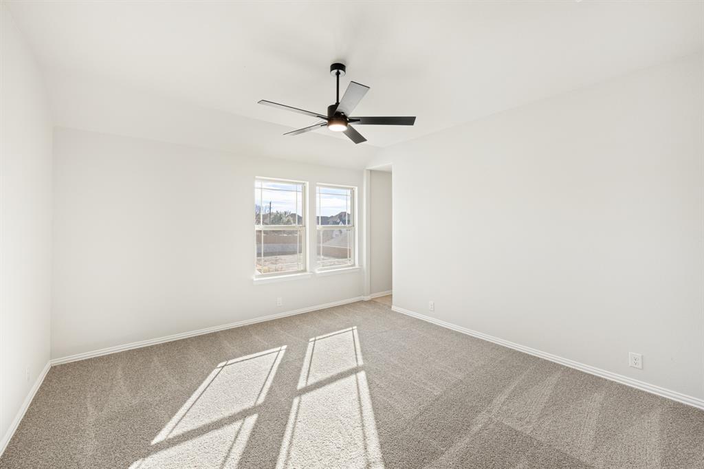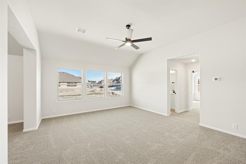 *Contact Community Manager for incentives!* NEW! NEVER LIVED IN. The Rose II by Bloomfield Homes blends open living and private retreats across 5 bedrooms and 4 baths, with a flexible first-floor study that adapts to your lifestyle. From the curb, a white stone-and-brick exterior, 8-foot front door, and 3-car garage create a bold welcome. Inside, upgraded wood floors flow through the main living areas, leading to a Family Room with ceilings soaring over 17 feet and a full-height stone fireplace that draws the eye upward. The kitchen is designed for both daily function and entertaining, with a massive island, quartz countertops, white Shaker cabinetry, built-in stainless steel appliances, and a walk-in pantry. The adjacent breakfast area looks out to the covered patio and fenced backyard, creating an easy indoor-outdoor connection. The first-floor primary suite offers space for a sitting area and features a bath with a garden tub, separate shower, dual sinks, and a generous walk-in closet. A secondary bedroom with a nearby full bath on the main level is ideal for guests. Upstairs, the game room opens to the family room below, while the media room is tucked away for movie nights. 3 more bedrooms—one connected by a Jack and Jill bath—each have direct bath access. Additional features include a mudroom off the garage, a gorgeous exposed staircase wrapped by a modern rail design, and a tankless water heater. Full landscaping with irrigation and exterior lighting ensures the home is as polished at night as it is by day. Located in a vibrant community with parks, trails, and gathering spaces, the Rose II offers room to live, gather, and unwind in style. Stop by to tour any day - Bloomfield's model in the community is open daily, ready to help!