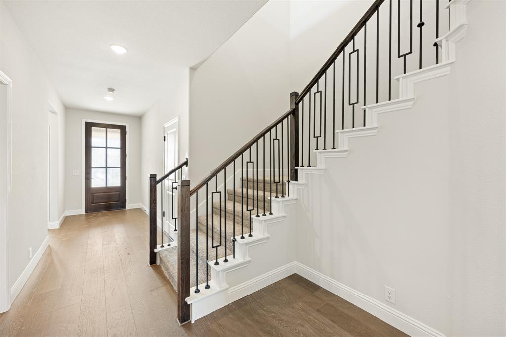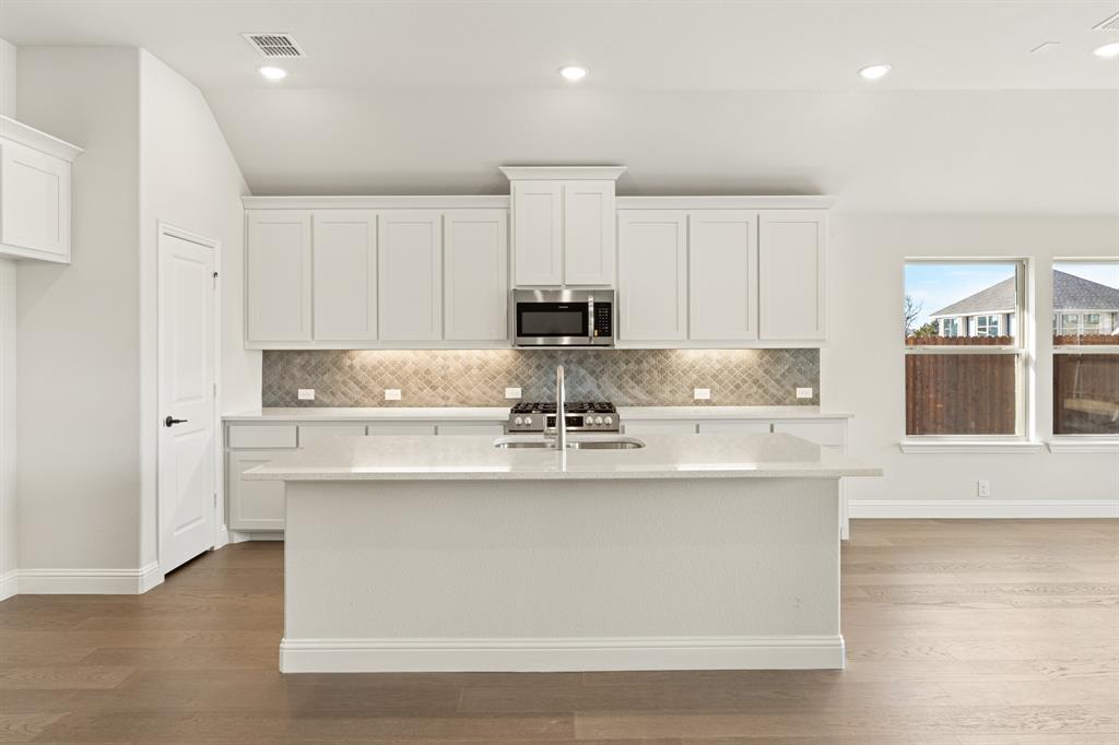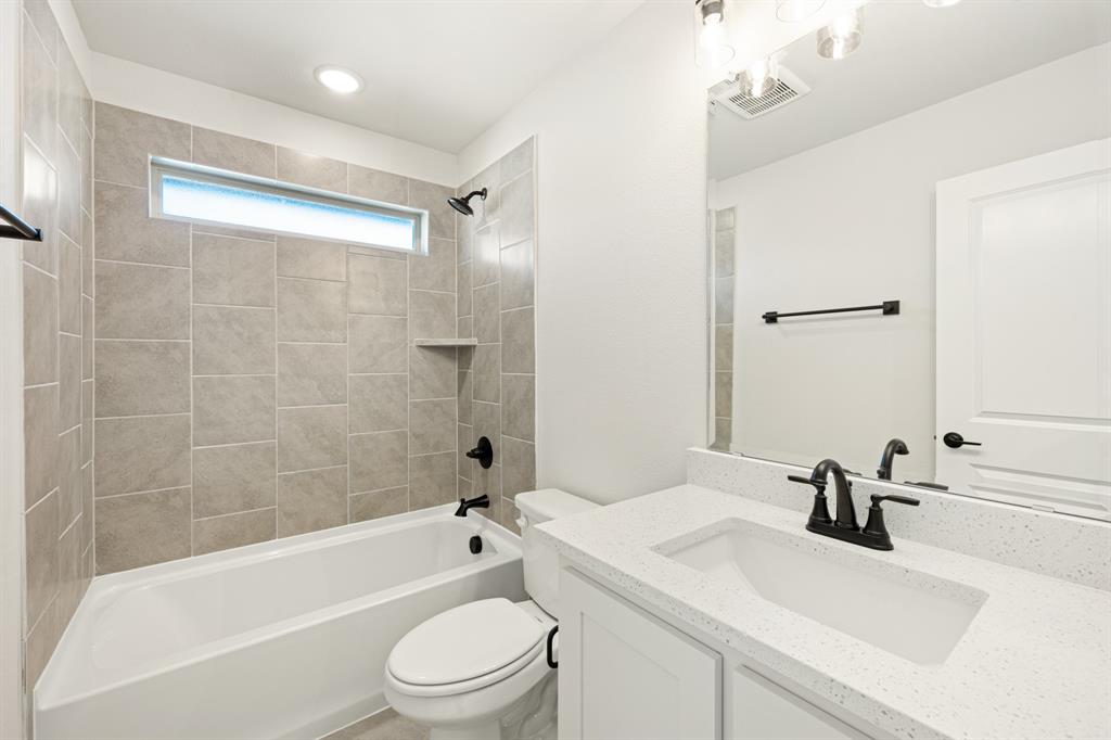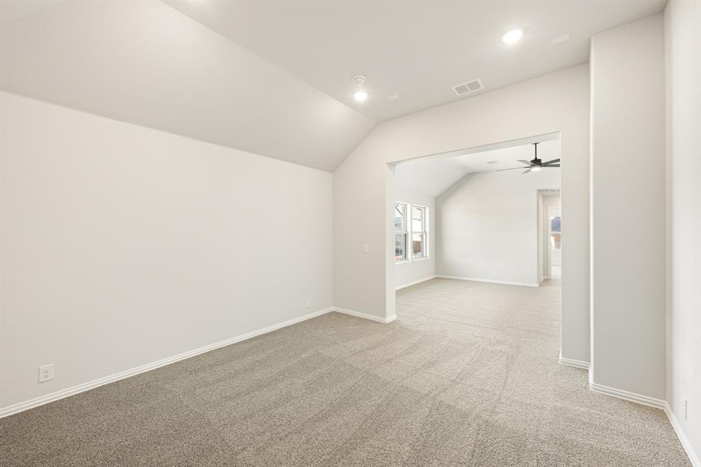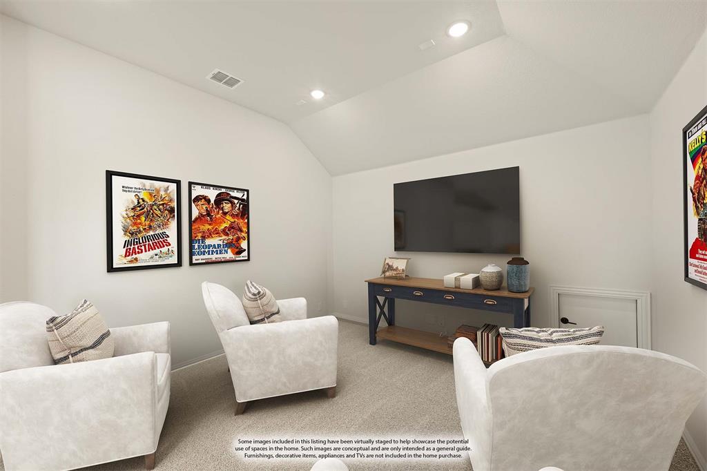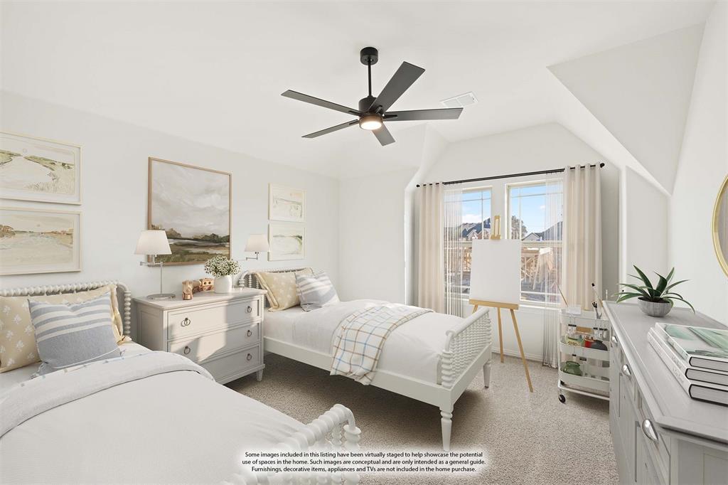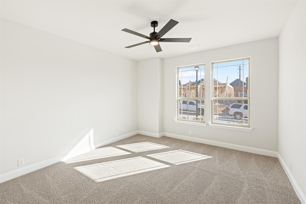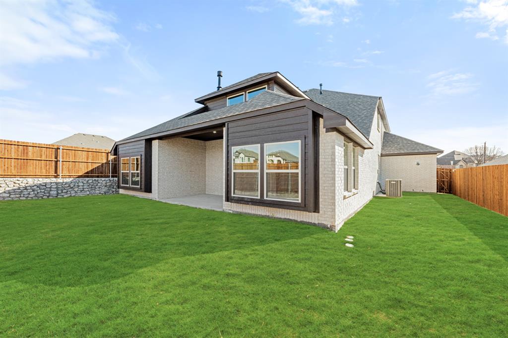 *Contact Community Manager for incentives!* NEW! NEVER LIVED IN. The Rose II by Bloomfield Homes blends open living and private retreats across 5 bedrooms and 4 baths, with a flexible first-floor study that adapts to your lifestyle. From the curb, a white stone-and-brick exterior, 8-foot front door, and 3-car garage create a bold welcome. Inside, upgraded wood floors flow through the main living areas, leading to a Family Room with ceilings soaring over 17 feet and a full-height stone fireplace that draws the eye upward. The kitchen is designed for both daily function and entertaining, with a massive island, quartz countertops, white Shaker cabinetry, built-in stainless steel appliances, and a walk-in pantry. The adjacent breakfast area looks out to the covered patio and fenced backyard, creating an easy indoor-outdoor connection. The first-floor primary suite offers space for a sitting area and features a bath with a garden tub, separate shower, dual sinks, and a generous walk-in closet. A secondary bedroom with a nearby full bath on the main level is ideal for guests. Upstairs, the game room opens to the family room below, while the media room is tucked away for movie nights. 3 more bedrooms—one connected by a Jack and Jill bath—each have direct bath access. Additional features include a mudroom off the garage, a gorgeous exposed staircase wrapped by a modern rail design, and a tankless water heater. Full landscaping with irrigation and exterior lighting ensures the home is as polished at night as it is by day. Located in a vibrant community with parks, trails, and gathering spaces, the Rose II offers room to live, gather, and unwind in style. Stop by to tour any day - Bloomfield's model in the community is open daily, ready to help!