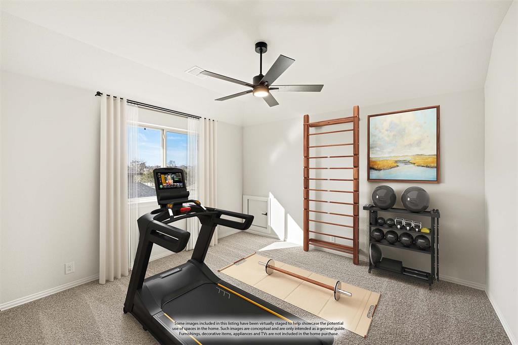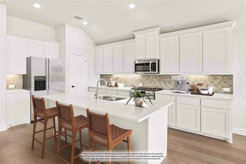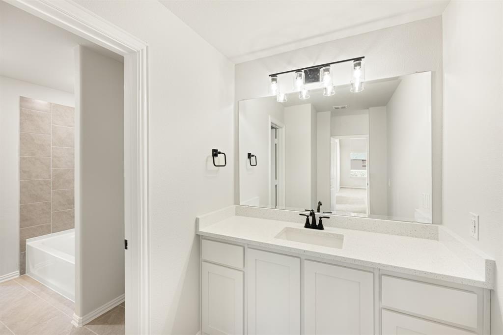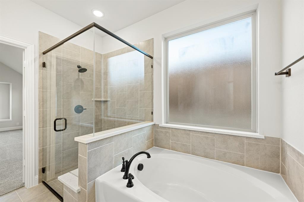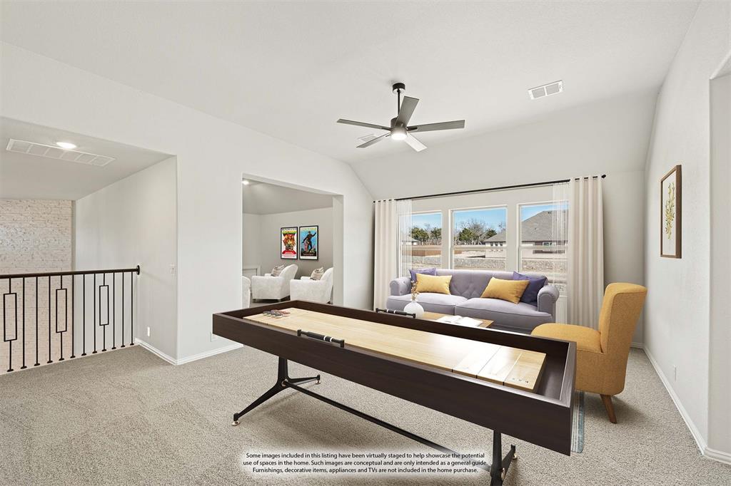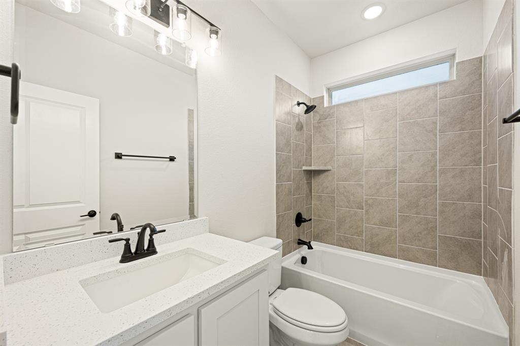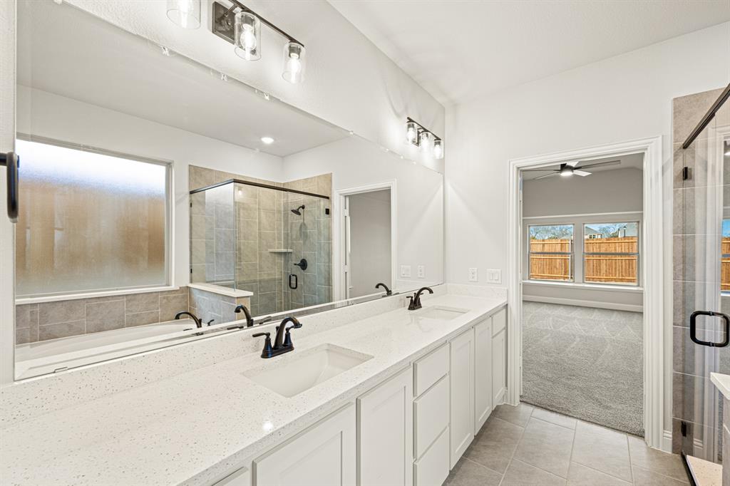*Contact Community Manager for incentives!* NEW! NEVER LIVED IN. The Rose II by Bloomfield Homes blends open living and private retreats across 5 bedrooms and 4 baths, with a flexible first-floor study that adapts to your lifestyle. From the curb, a white stone-and-brick exterior, 8-foot front door, and 3-car garage create a bold welcome. Inside, upgraded wood floors flow through the main living areas, leading to a Family Room with ceilings soaring over 17 feet and a full-height stone fireplace that draws the eye upward. The kitchen is designed for both daily function and entertaining, with a massive island, quartz countertops, white Shaker cabinetry, built-in stainless steel appliances, and a walk-in pantry. The adjacent breakfast area looks out to the covered patio and fenced backyard, creating an easy indoor-outdoor connection. The first-floor primary suite offers space for a sitting area and features a bath with a garden tub, separate shower, dual sinks, and a generous walk-in closet. A secondary bedroom with a nearby full bath on the main level is ideal for guests. Upstairs, the game room opens to the family room below, while the media room is tucked away for movie nights. 3 more bedrooms—one connected by a Jack and Jill bath—each have direct bath access. Additional features include a mudroom off the garage, a gorgeous exposed staircase wrapped by a modern rail design, and a tankless water heater. Full landscaping with irrigation and exterior lighting ensures the home is as polished at night as it is by day. Located in a vibrant community with parks, trails, and gathering spaces, the Rose II offers room to live, gather, and unwind in style. Stop by to tour any day - Bloomfield's model in the community is open daily, ready to help!