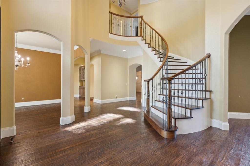 This stunning home with a spa-like backyard & pool impresses on every level and boasts numerous updates. Located across from a quaint pond & park, you're greeted by double glass and metal doors and a stunning grand foyer with a spiral staircase. Built with attention to quality & detail, it features tall ceilings, plantation shutters, custom built-ins, rich hand-scraped hardwood floors & designer touches throughout. The spacious formal dining room is perfect for special occasions. The downstairs includes a highly desired primary suite with a must-see ensuite spa-like bathroom, two living spaces & an office-study with built-ins & French doors. There is also a secondary bedroom with an ensuite bathroom located downstairs. A sunroom with multiple French doors overlooks the stunning pool. Upstairs, you'll find a media room & a flex-bonus room. Recent updates include a bathroom remodel & upgraded garage doors, flooring & storage. The 3-car garage has a custom jackshaft and door intended for high clearance. With an installed lift, four cars will fit inside. Additionally, there is a shopvac, tesla charger, and utility storage. Don’t miss this stately & spectacular home.
