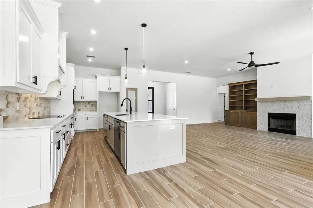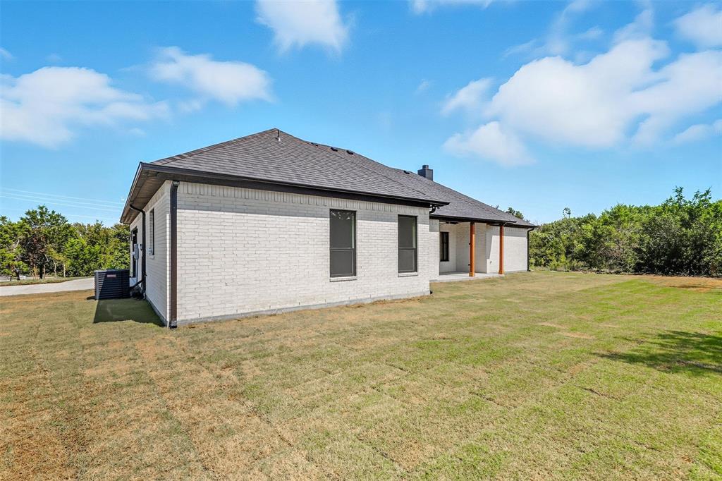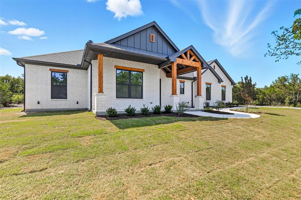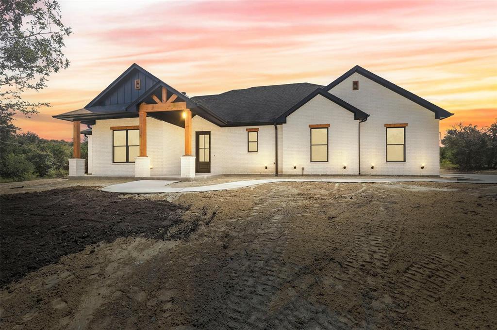 Beautiful new construction, white brick home ready before the end of summer! Nestled perfectly on a two acre heavily treed lot, providing tons of privacy. This 4 bedroom 2 bath home is guaranteed to impress. This home features an open concept design with a split floor plan. Features include quartz countertops throughout, custom cabinetry, decorative lighting, wood burning fire place with beautiful stained cabinetry surround! Black hardware, walk-in pantry, oversized kitchen island with double sided cabinets, GE appliances, custom vent-a-hood. Master bath features freestanding tub, walk-in shower with quartz bench, double vanity, drop down make up counter, black faucets. This home is beautiful crafted while also being extremely functional offering tons of open space with an oversized living room.Thoughtfully done landscape and irrigation package with sod. This is one you will not want to miss! NO HOA! OUTSIDE CITY LIMITS! Plenty of room for metal shop, mother in law suite, pool, etc.. Builder can quote packages for pool, shops, mother in law suites, cabana, or any other accessory building packages.
