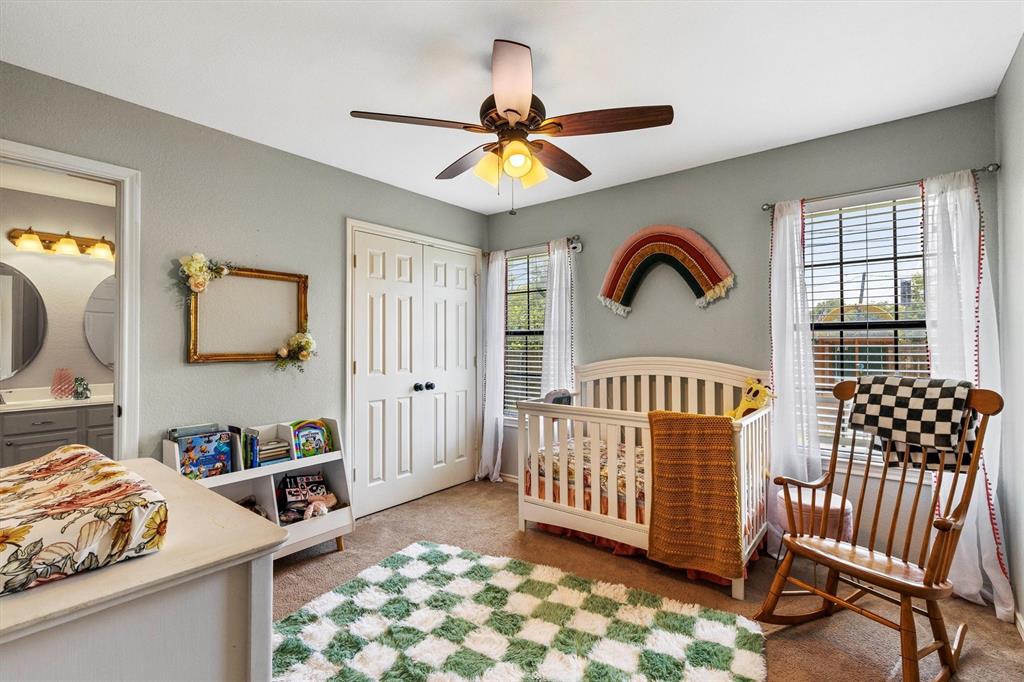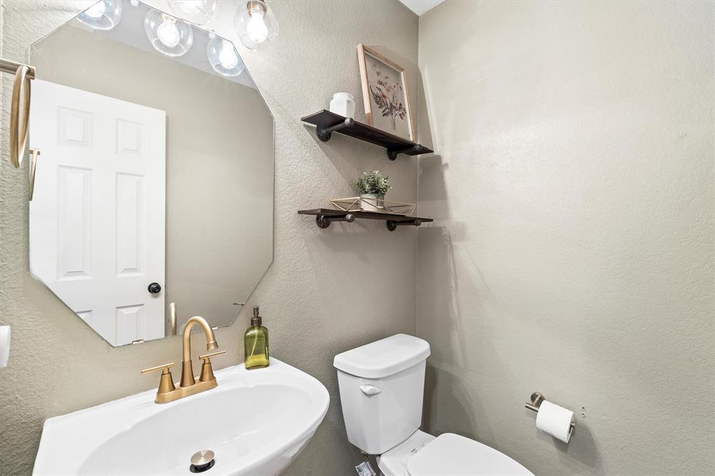 The full-size utility room offers practicality with a sink, drying area, and ample cabinetry, while a stylish half bath showcases a classic pedestal sink. The recently remodeled master suite impresses with generous space, a cozy wood-burning fireplace, and two closets. The inspired master bath boasts a massive walk-in shower, dual vanities, and a new toilet. Two additional spacious bedrooms are joined by a convenient and cute Jack-and-Jill bath.