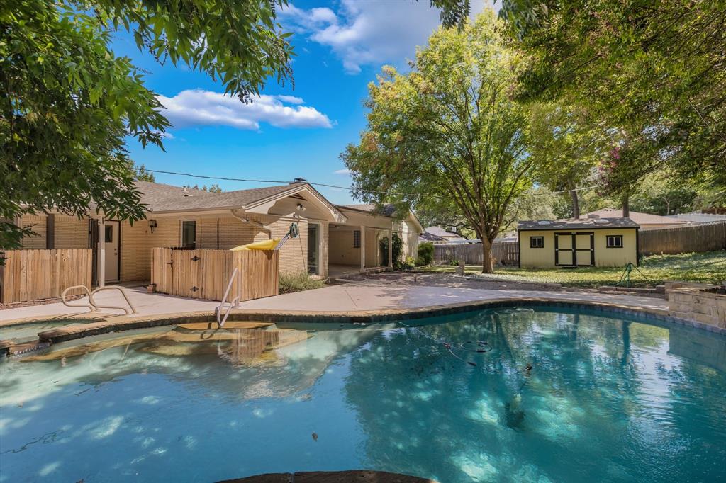 Welcome to this exceptional home located on a premier street in sought-after Ridglea Hills! This charming property boasts numerous updates and gorgeous recently restored hardwood floors! Step inside to discover a spacious and bright interior, featuring beautiful plantation shutters, Fresh paint throughout, ample natural light, multiple living spaces including a formal living room, formal dining room, and a cozy family room with a stunning stone fireplace. The oversized recently renovated kitchen is a true highlight—flooded with natural light and equipped with crisp white cabinetry, a GE Professional gas cooktop and oven, stainless steel appliances, and ample storage for all your culinary needs. Retreat to the large private owner’s suite with an en-suite bath. Additional thoughtful upgrades include a vertical platform lift in the garage, recessed lighting, and a Generac whole-home generator for peace of mind. Enjoy your own backyard paradise with a beautifully maintained yard, full sprinkler system, and a sparkling pool! Relax under the large, covered patio complete with ceiling fan and skylights—ideal for entertaining or unwinding in the shade. A well-built storage shed offers even more functionality. Located close to TCU, the Fort Worth Zoo, world-class museums, shopping, dining, and just minutes from Camp Bowie and Bryant Irvin, this home also benefits from a vibrant neighborhood community with frequent events. Plenty of storage, quality craftsmanship, and unbeatable location make this home a must-see! Buyer to verify schools, square footage, and taxes.