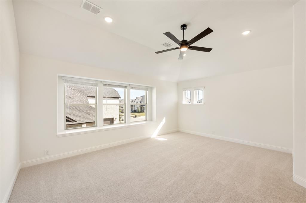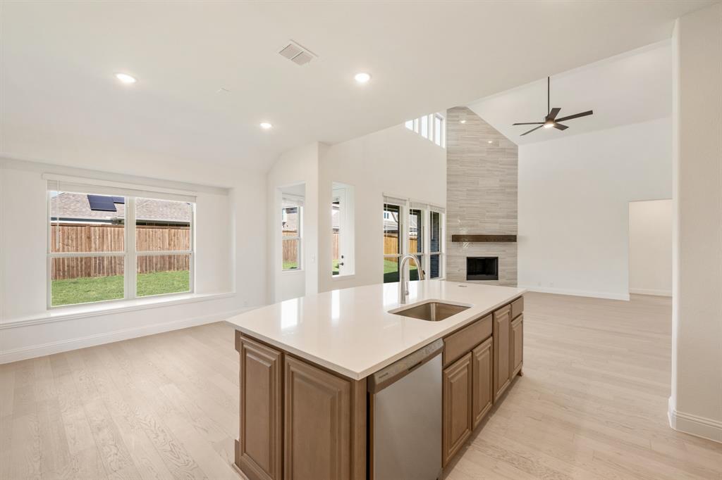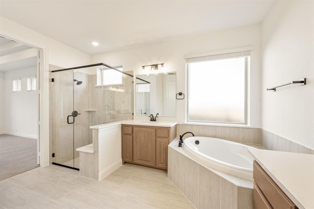 *$20K to use towards closing cost, rate buydown or off price!* NEW! NEVER LIVED IN! Finishing October 2025, Bloomfield Homes’ Primrose V FE offers 4 bedrooms, 3 bathrooms, and 3 garage spaces (two separate bays), combining an expansive layout with a curated selection of upgrades. The Antique Pearl brick with Cave Rock Saw Cut stone creates a refined exterior, complemented by a stained 8-foot front door. Level 5 engineered wood flooring in a blonde oak finish runs through the main living areas, enhanced by a modern exposed staircase with horizontal rails and soaring ceilings that open up the space. A private study with glass French doors sits at the front, while the Family Room is anchored by a floor-to-ceiling Modern Box Oak tile fireplace. The Deluxe Kitchen features light stain cabinets, Level 3 quartz counters, understated backsplash, a gas cooktop, trash can pull-out, and built-in stainless steel appliances. 2 split bedrooms sit on one side of the first floor, while the Primary is located on the opposite end. Plenty of space to fit your entire bedroom furniture set, a center soaking tub with tile surround, a separate bench seat shower, and 2 vanities on either side of the bathroom. Upstairs, a game room with open views joins a media room, an additional bedroom with a walk-in closet, and a final full bath with two exits. All baths are finished with Coquina quartz and upgraded tile selections. The extended covered patio offers shaded outdoor living year-round, framed by a fully landscaped yard with a full sprinkler system. Additional highlights include a single-bowl stainless kitchen sink, utility sink, mud cabinet, buffet, and much more built-in storage bringing both style and function to this Somerset home with access to community amenities like trails, a clubhouse, and a pool. Stop in to view what Bloomfield offers!