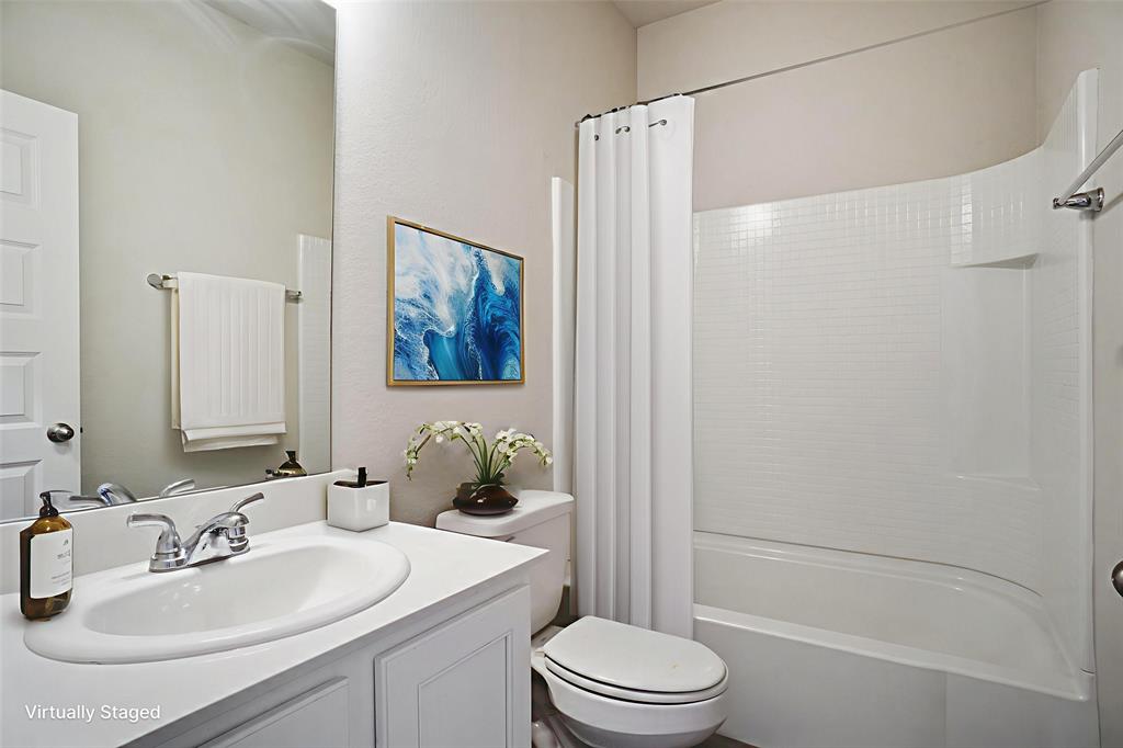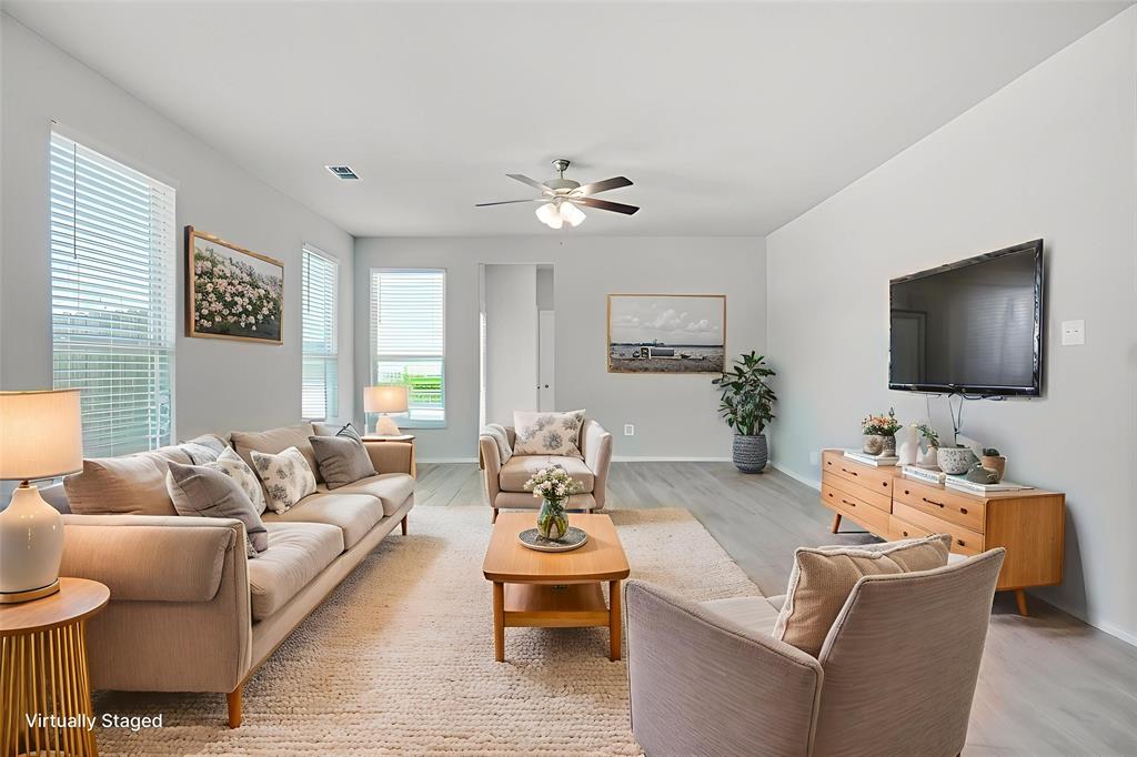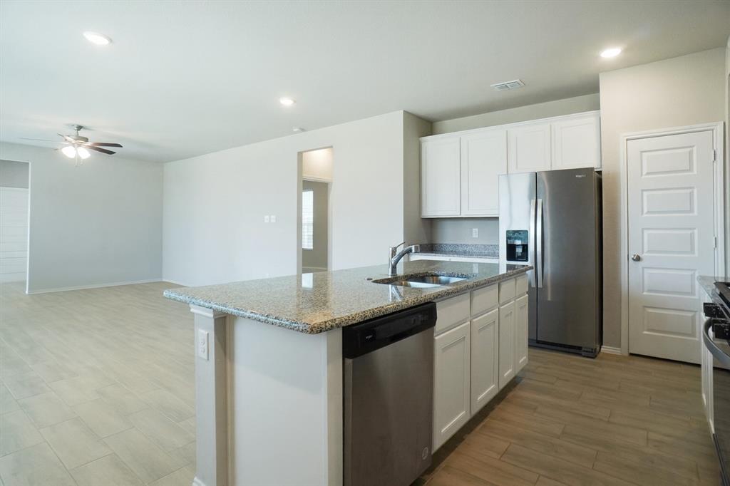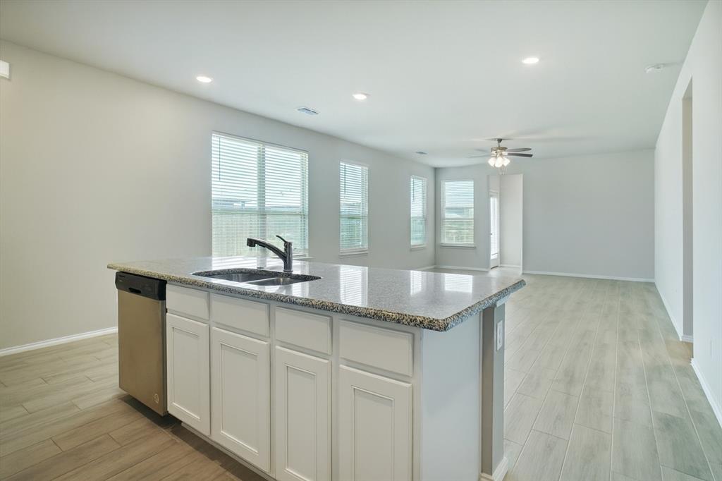 Step into this bright and airy Fort Worth home, in splendid condition. The entryway welcomes you into an open, unified living space, bathed in natural light, with ample room to relax with loved ones or entertain guests. The kitchen offers gorgeous granite counters, all stainless appliances, a two-basin island sink, bar seating, and abundant cabinet & pantry storage. The split main bedroom is spacious and includes a gleaming en suite bath with an expansive vanity & makeup counter, an oversized tub, and two closets. Out back, find a backyard enclosed with six-foot privacy fencing and a concrete patio as well as the alley-entry two car garage with plenty of extra storage space. Community amenities include a playground, a dog park, and lots of walking & jogging trails. Easy access to I30 and Loop 820. Minutes from Downtown Fort Worth, the historic Fort Worth Stockyards, and lots of shopping & dining options, as well as fabulous 3,400-acre Lake Worth with boating, fishing, parks, an amazing Nature Center, and more.