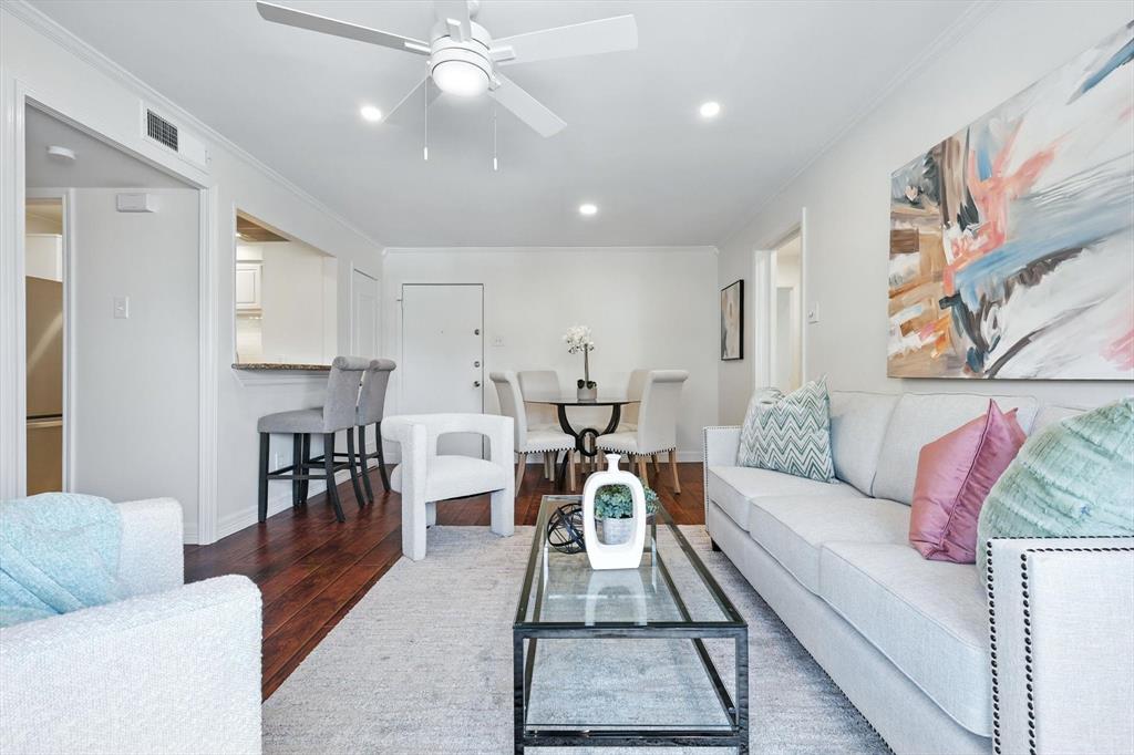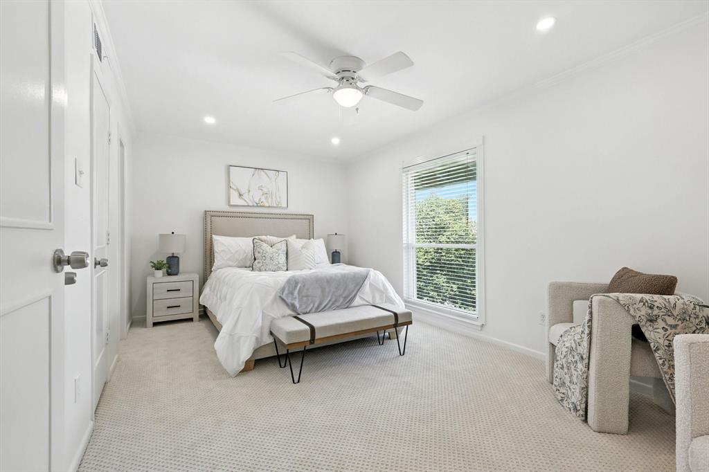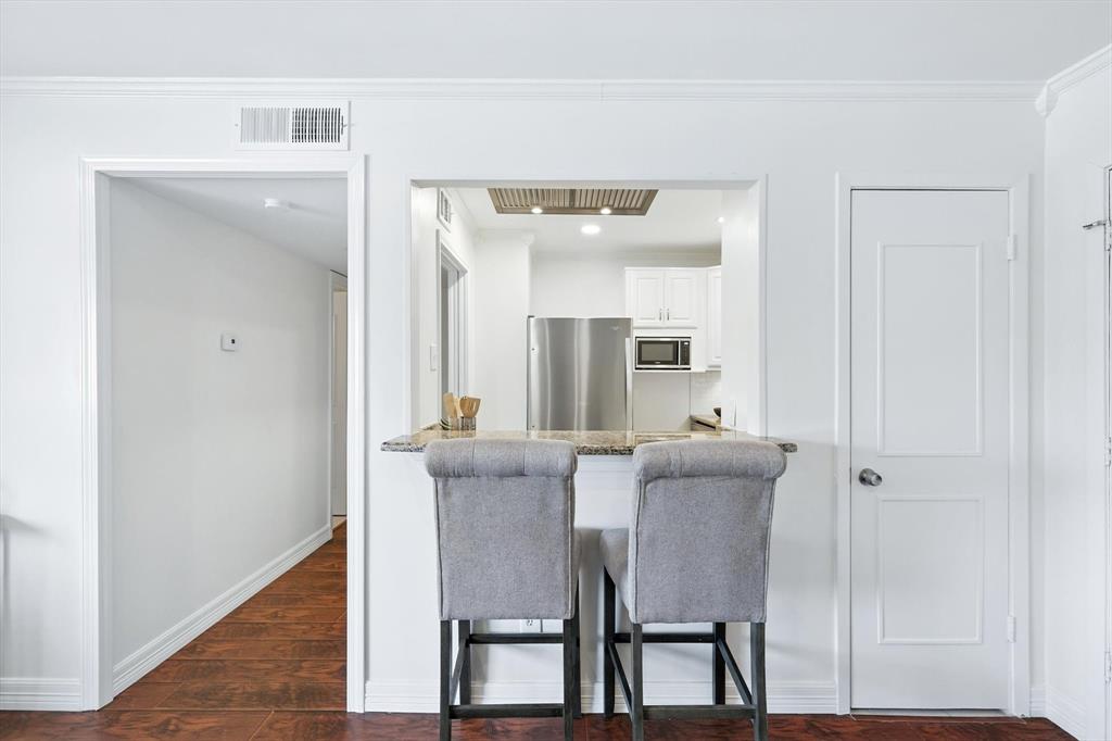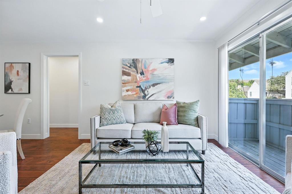 Welcome to your dream home nestled in a charming, well-kept community built around a lush courtyard with a sparkling pool. PRIME location perfectly situated just off Wycliff and the Tollway. This beautifully updated 2nd-floor condo has been refreshed from top to bottom—fresh paint on every surface (walls, baseboards, cabinets, doors, trim, and crown molding), re-grouted tile floors and showers and re-glazed tub for a spotless, like-new finish, and plush brand-new carpet in both bedrooms. Bright and inviting with all-new lighting, complemented by ceiling fans in each bedroom and living area. Step out from the living room onto your private balcony—perfect for unwinding or enjoying fresh air. The kitchen shines with brand-new stainless-steel appliances, while the oversized primary suite offers plenty of space for a home office or cozy sitting area. The 2nd bedroom boasts its own private entrance, making it perfect for guests or a roommate. An extra-large utility closet with FULL-SIZE WASHER & DRYER CONNECTIONS plus bonus storage adds everyday convenience. Windows were replaced to energy efficient by the HOA in 2021.This rare find combines style, comfort, and an unbeatable location! Two assigned parking spaces. Listing Agent is related to the owner.