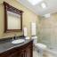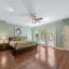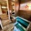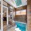 The primary suite is a private sanctuary, boasting a spacious layout, spa-inspired bath with freestanding soaking tub, oversized shower with seat, dual vanities, large walk-in closet, cedar closet, and an underground safe. A true showpiece, the sunken indoor spa features a deep, custom-built soaking tub framed by stained-glass windows and skylights, surrounded by rich wood-grain ceramic walls and floors—creating an intimate wellness retreat accessible year-round, regardless of weather.