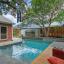 Step outside to your private backyard oasis, complete with a sparkling pool, cascading waterfalls, integrated spa, shaded patio.