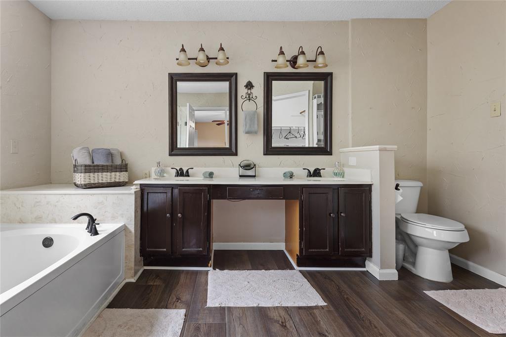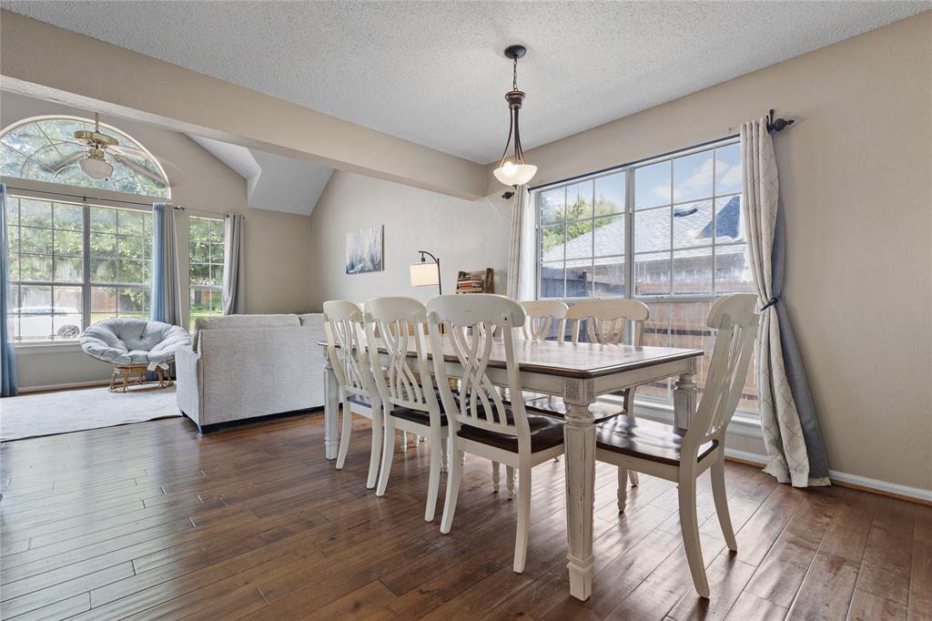 Welcome to Wellington Park Subdivision! This 2-story home boasts a beautiful BRAND NEW ROOF (class 3 impact rated 30 year shingle installed July 30th, 2025), brand new gutters, freshly stained fence, and fresh exterior paint, and that is only the beginning. The home offers ample space for comfortable living and entertaining. Inside you will find a cozy woodburning fireplace, complemented by 2 spacious living areas ideal for both relaxation and family time. Complete with a formal dining area and large kitchen island with seating area, this home provides versatile dining options, while the spacious walk-in pantry ensures ample storage space. The primary suite is a true retreat, featuring a generously sized closet with built-in shelves, a seating area, a double vanity for added convenience, a large tub, and a separate shower. The entire upstairs has new plank vinyl flooring. The backyard is a private oasis consisting of a pool with a heat pump, beautiful lush landscaping, complemented by a pergola, providing shade and ambiance for dining and lounging. Pool area is securely fenced for safety and peace of mind. All appliance will remain with the home.