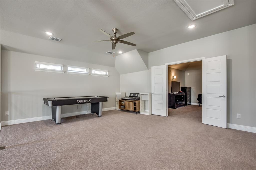 The generously sized primary suite is thoughtfully secluded from the secondary bedrooms, offering a serene retreat with elegant bathroom and large walk-in closet. Upstairs, enjoy movie nights in the dedicated media room or unwind in the game room loft overlooking the main living space.