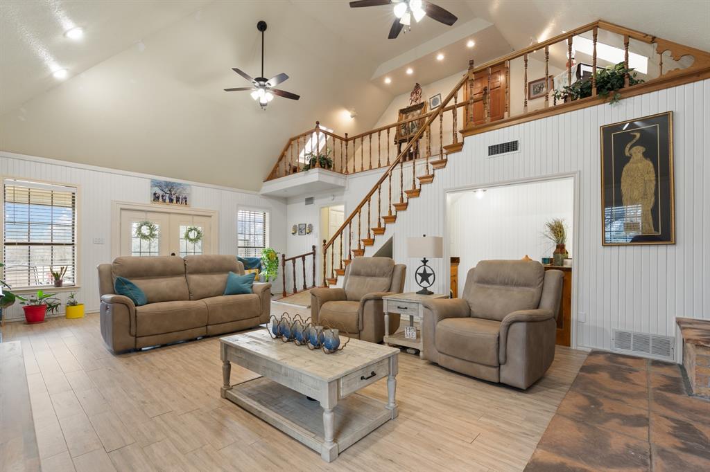 Motivated Sellers!!!! This beautiful property offers the perfect mix of country charm and modern convenience with 10 ag-exempt acres, a stocked pond, and a spacious 35×40 workshop with electricity. The 3-bedroom, 2-bath home features an open layout that’s ideal for gatherings, a cozy fireplace, and a bonus upstairs room that can be used as a game room, man cave, or home office. Outside, you’ll find mature trees that provide shade and privacy, fully fenced and cross-fenced pastures for cattle or horses, and plenty of space to add a pool, garden, or extra outdoor living areas. Additional barns, a carport, and a private deep well make this property ready for livestock, projects, and storage. Conveniently located just minutes from town, it’s the perfect spot for peaceful country living. With a recent $45,000 price drop, this property is one of the best values in the area and won’t last long! Water heater- 2018, Roof and HVAC- 2019, Pipe fencing, well and shop added in 2022 as well as many recent upgrades.