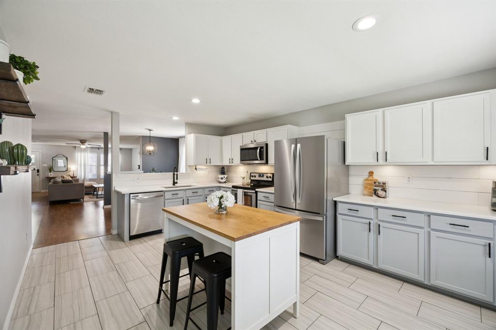 Charming, Fully Updated Home in the Heart of Little Elm! Step into style and comfort in this beautifully renovated gem nestled in the highly sought-after Villages of Woodlake. Every inch of this home has been thoughtfully updated, creating an elevated yet approachable feel from the moment you walk in. Enjoy warm-toned laminate flooring throughout the entire home—no carpet here! The kitchen, bathrooms, and laundry room feature stylish, upgraded tile for both beauty and durability. The heart of the home is the oversized, stunning kitchen, complete with quartz countertops, sleek stainless steel appliances, a deep farmhouse sink with a sprayer faucet, and a moveable island that stays with the home—perfect for entertaining or daily flexibility. The living room features a custom decorative accent wall that adds a designer touch and cozy charm to the space. Ceiling fans in every room provide comfort year-round, and natural light fills the open layout. Whether you're looking to grow into your next chapter or simplify into a more manageable space, this home checks every box. Located in one of Little Elm's most convenient corridors—close to major retail, restaurants, and top-rated schools—this is the lifestyle upgrade you've been waiting for, at a price point that’s hard to beat. Don't miss the opportunity to call this beautifully refreshed home yours! Full updates and upgrades list in transaction desk.