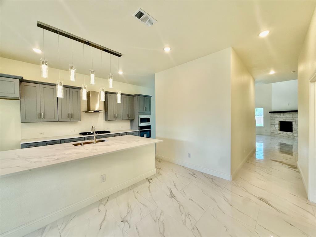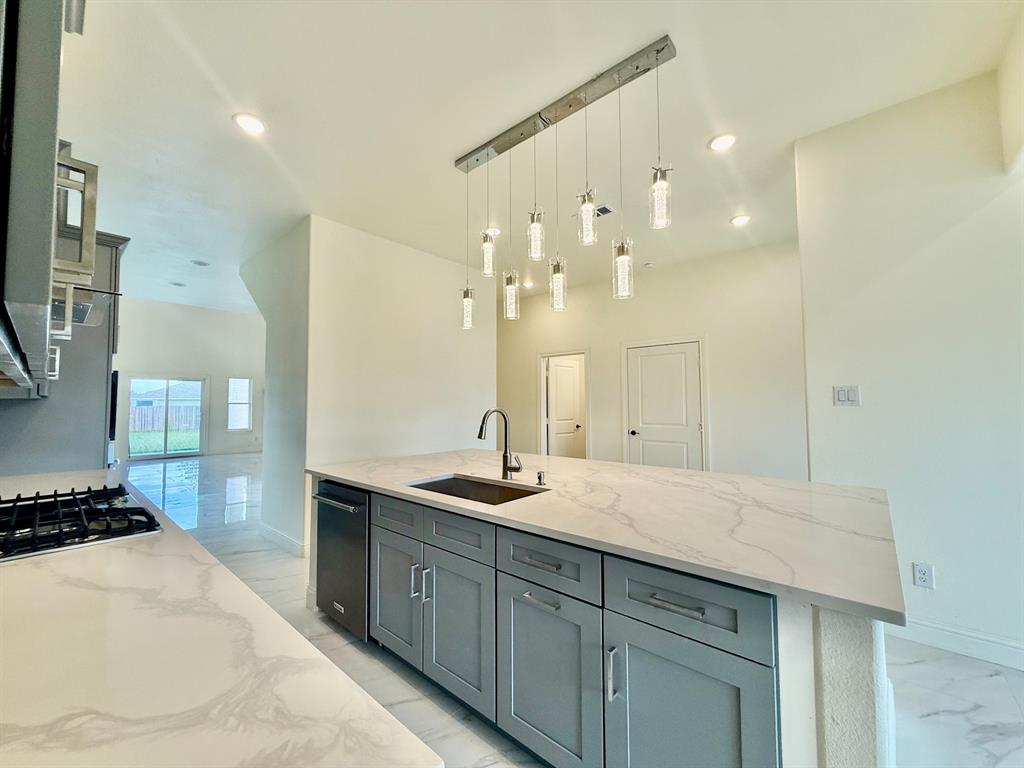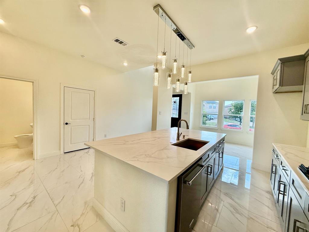 The heart of the home is the open-concept kitchen, where a large quartz island takes center stage — ideal for entertaining, family dinners, or casual gatherings with friends. The kitchen seamlessly flows into the spacious living area, creating the perfect atmosphere for hosting or relaxing. A 2-car garage provides secure parking and ample storage.