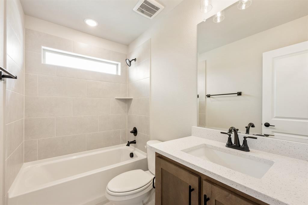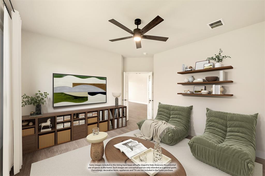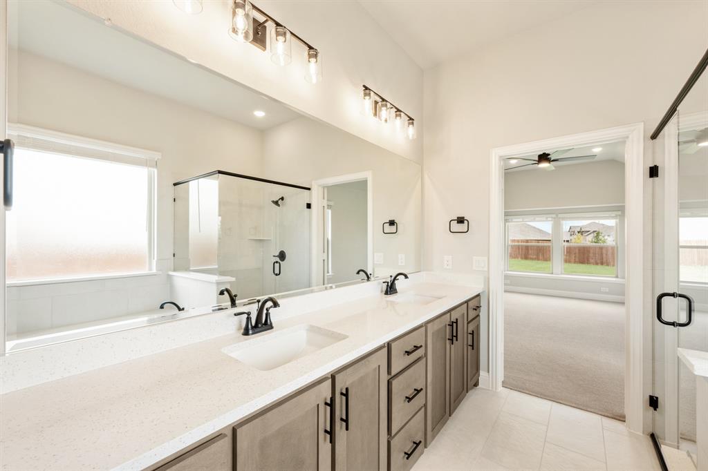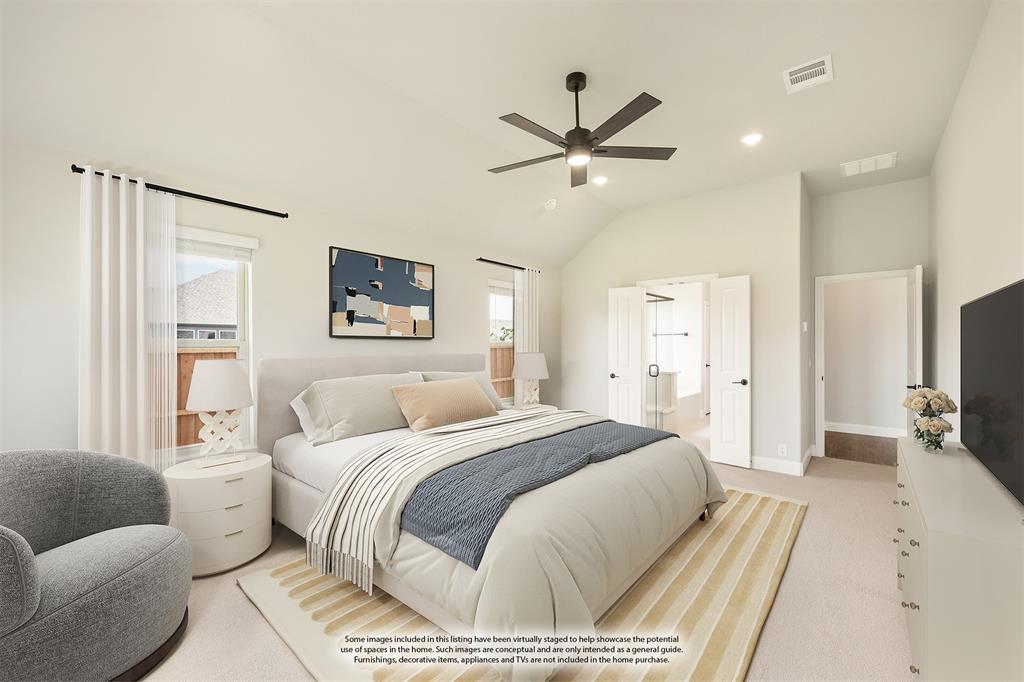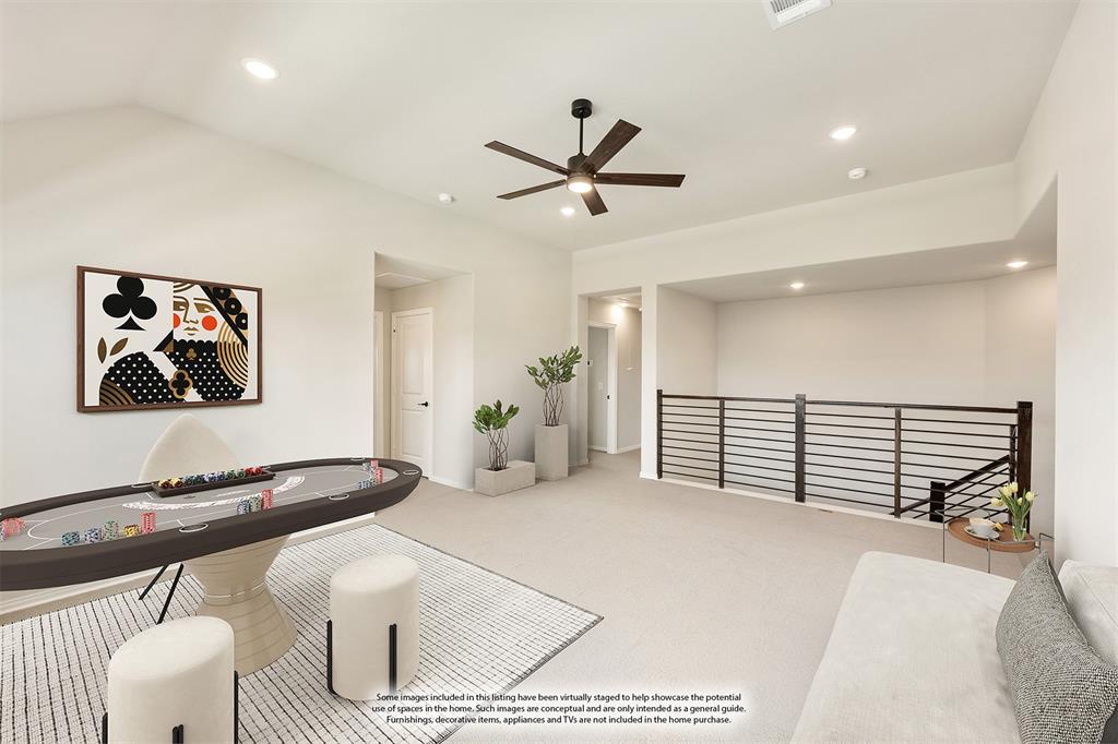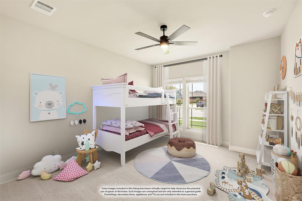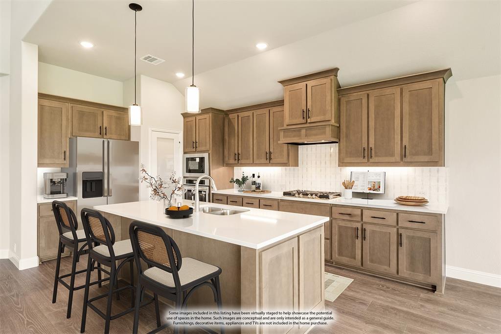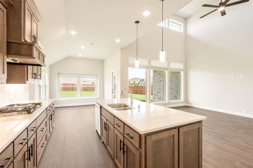 NEW! NEVER LIVED IN. Quick close available! The Classic Series Rose by Bloomfield Homes is a thoughtfully designed 2-story layout offering 5 bedrooms, 4 full bathrooms, and versatile spaces tailored to modern living. Situated on an oversized corner homesite, this home greets you with a charming covered front porch and an 8' front door, leading into a bright and spacious layout that blends comfort with convenience. The main level features an open-concept Deluxe Kitchen with custom cabinetry, gas cooking, and a large center island overlooking the expansive Family Room—perfect for hosting or everyday moments. Downstairs also includes a bedroom with nearby bath, Laminate flooring in the entry, extended entry, Kitchen, halls to bedrooms, and Family Room, and a Deep Garage for additional storage or oversized vehicles. Upstairs, enjoy a generous Game Room and 3 secondary bedrooms thoughtfully placed for privacy and functionality. The luxurious Primary Suite includes a walk-in closet and a spa-inspired ensuite with dual vanities, a soaking tub, and a separate shower. Additional highlights include gutters, covered back patio, and energy-efficient features such as a gas tankless water heater. Located in a master-planned community filled with parks, trails, and resort-style amenities, the Rose is ideal for those seeking space, style, and smart design. Visit Bloomfield Homes at Heartland today to learn more about making this exceptional plan yours!