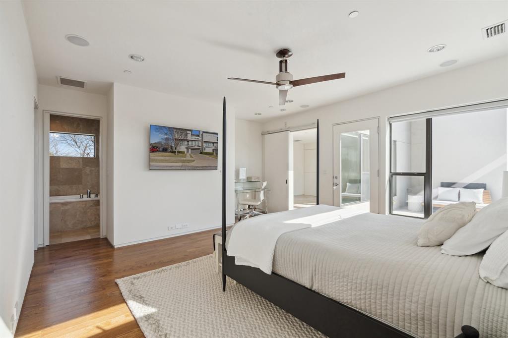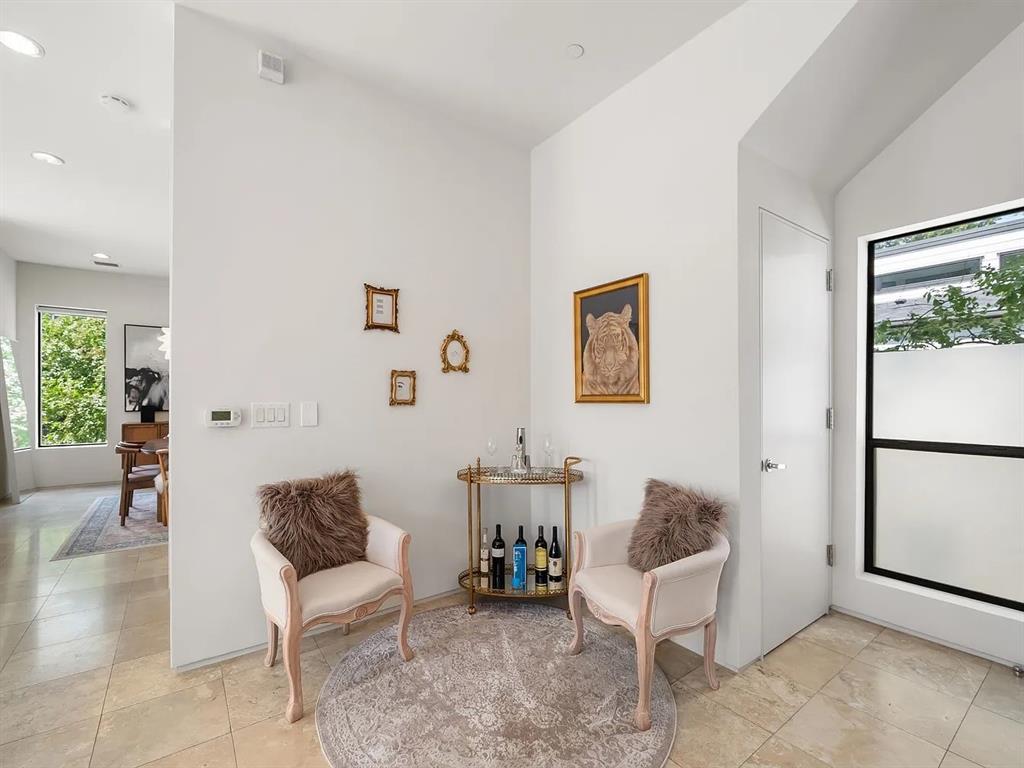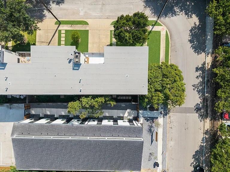 Architecturally significant contemporary home designed by Alan Kagan of Dwellings, ideally located just minutes from the vibrant Knox-Henderson area and with convenient access to 75 Central Expressway. This end-unit, townhouse-style condo is surrounded by mature crepe myrtles, creating a serene treehouse feel inside while offering beautiful curb appeal outside. Oversized windows fill the home with natural light, complementing the clean, modern lines and gracious ceilings.