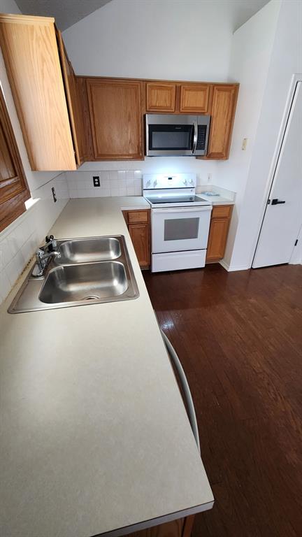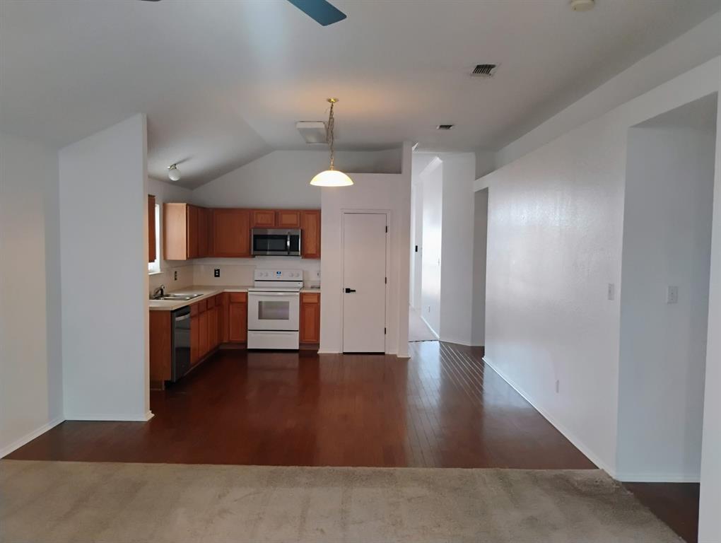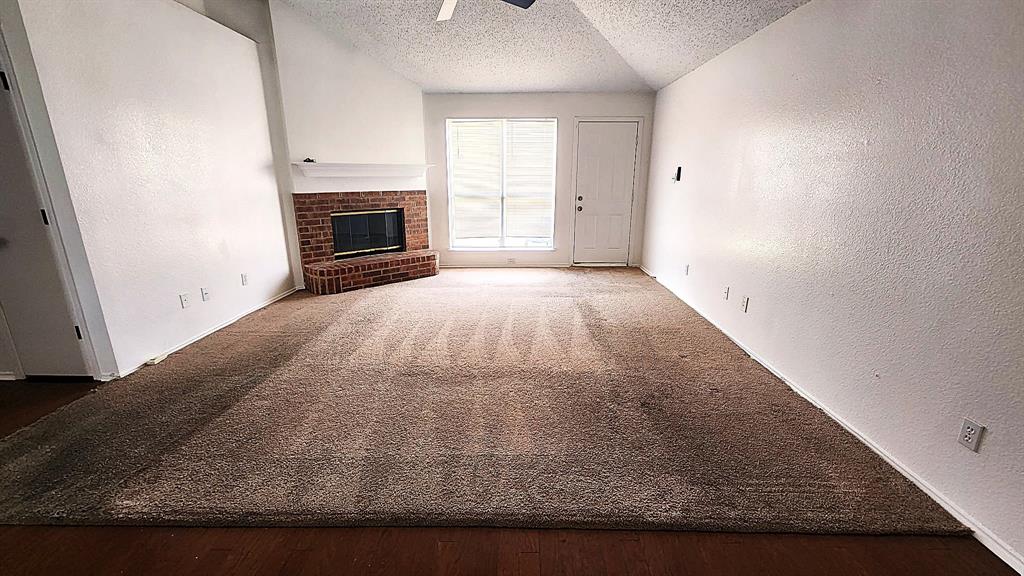 Traditional brick home in desirable Kirby Creek Village. Situated on an oversized lot with a spacious backyard and direct access to greenbelt. Open floor plan features formal living and dining area at the front of the home and a second living space off the kitchen at the back. Eat-in kitchen offers ample space for dining and entertaining. Interior includes a gas-log fireplace, wood flooring in kitchen and hallways, and carpet in main living areas and bedrooms. Convenient location near schools, shopping, and major highways.