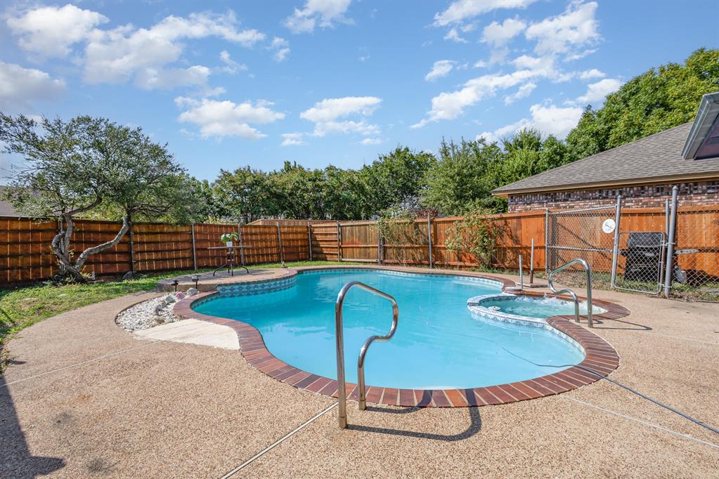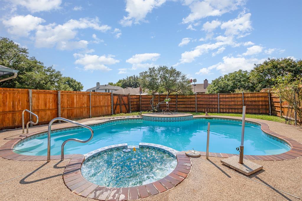 Step outside to your own backyard escape. A sparkling in-ground gunnite pool with attached spa invites you to unwind or host weekend gatherings. The surrounding decking offers plenty of space for lounging, dining, or soaking up the Texas sunshine. A wood privacy fence and established landscaping create a serene setting for year-round enjoyment.