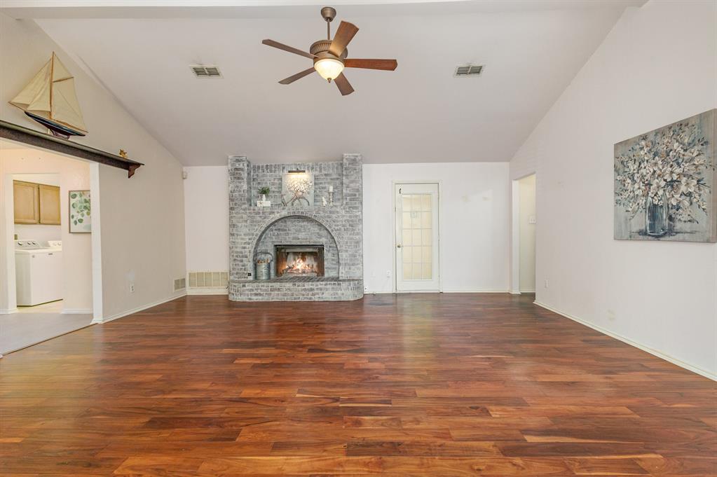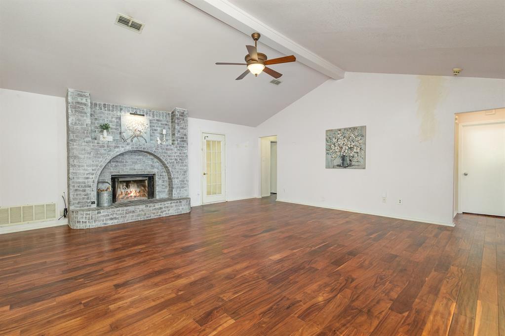 Set on a quiet street with mature trees, this brick home combines classic curb appeal with spaces designed for comfort and connection. Inside, a large family room welcomes you with a soaring vaulted ceiling, rich wood floors, and a dramatic floor-to-ceiling brick fireplace—perfect for cozy evenings or lively gatherings.