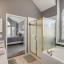 Downstairs master suite offers a lofty ceiling, a comfortable sitting area & an indulgent bathroom complete with double quartz vanities, white cabs, a luxurious soaking tub & a walk-in closet.