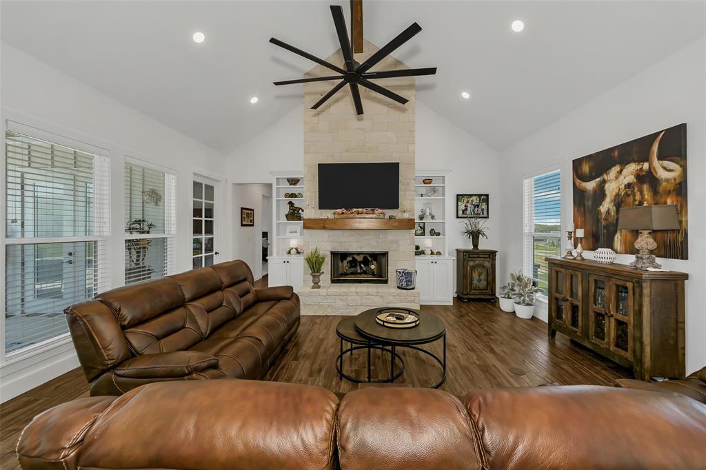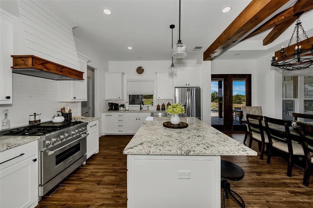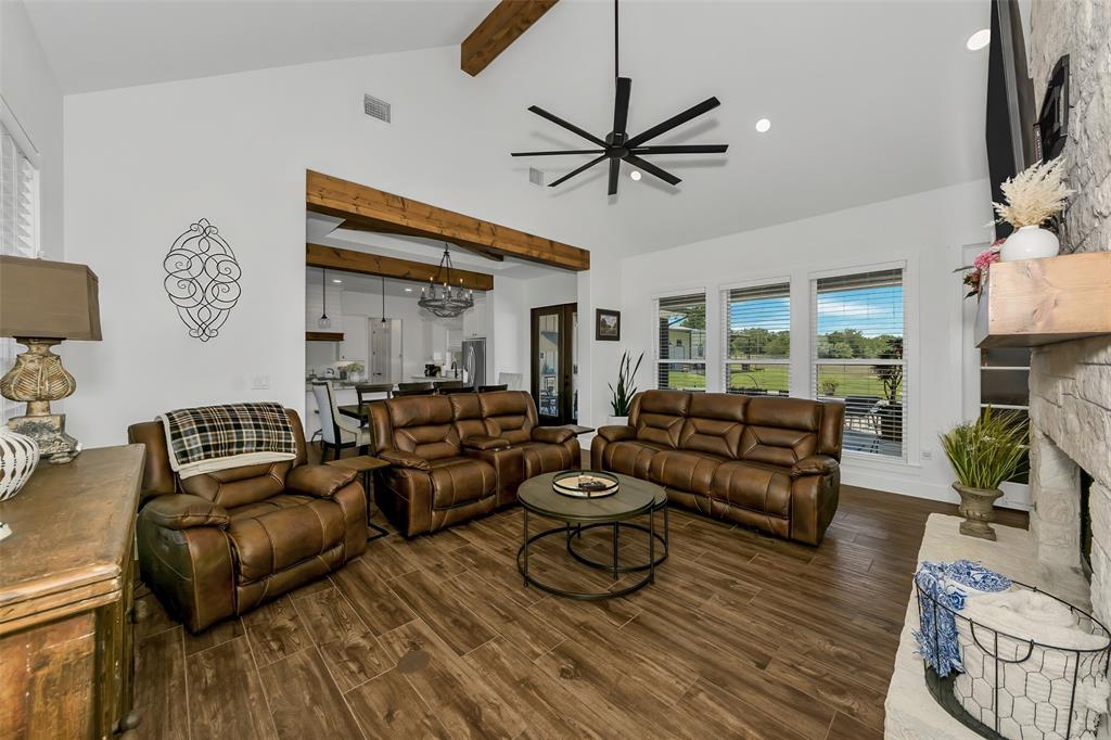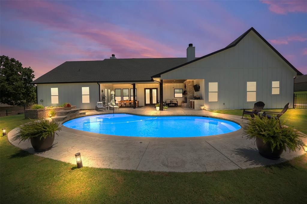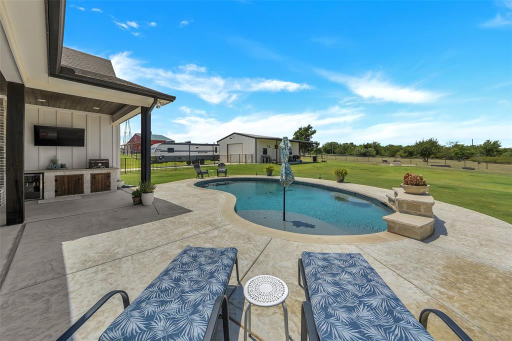 Welcome to this stunning Custom built home, nestled on a spacious 2-acre lot that's partially fenced. This offers 2,230 sq. ft. of thoughtfully designed open living space, beautiful kitchen with modernized fixtures and top of the line appliances. This home features three bedrooms, and the master bedroom has two master closets, two and a half bathrooms, and a versatile flex room that can adapt to your needs. The home showcases vaulted 10 inch ceilings with stained beams and 8-foot doors throughout the home and boasts a durable architectural roof, ensuring both style and longevity. Enjoy energy efficiency with a tankless water heater, blown-in insulation in the attic for added comfort, perfect for saving on utility costs. The property includes a generous shop with foam insulation, ideal for storage or hobbies, also plumbed with electricity and water. Also offers a plug for your Rv if needed. Step outside to your own oasis, complete with a fireplace for those cozy nights and a beautiful pool, and a fire pit, perfect for relaxation and entertaining. This home truly embodies beauty and functionality, making it a perfect retreat for those seeking a blend of modern living and country charm.