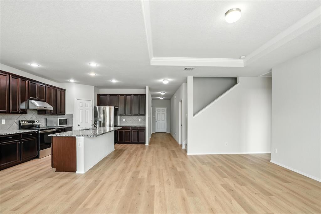 This 2017 built stunning home in prestigious Keller ISD boasts 4 bedrooms, 2.5 Bathrooms, an office and a spacious game room. The first floor features an open-concept living room with a brick fireplace and luxurious vinyl plank flooring, a gourmet kitchen with a large island, walk-in pantry, mudroom with sink, and a separate home office next to the front door. It has a generous size primary bedroom with both bathtub and walk-in showers, dual sinks and a spacious walk in closet. Upstairs has a huge game area, a full bathroom with two sinks, and three spacious bedrooms with good size walk-in closets in each. Enjoy a large backyard of a premium corner lot with covered patio and extended concrete adorned with peach and pear trees producing savory fruits every season. This lovely, ready-to-move-in residence in West Fork Ranch, features two community swimming pools complete with splash pads, outdoor pavilions and grilling areas, a community park with children play, and walking paths. It is ideally located just minutes from I-35 W, Presidio Junction, Alliance Town Center and Sunset Valley Elementary school.