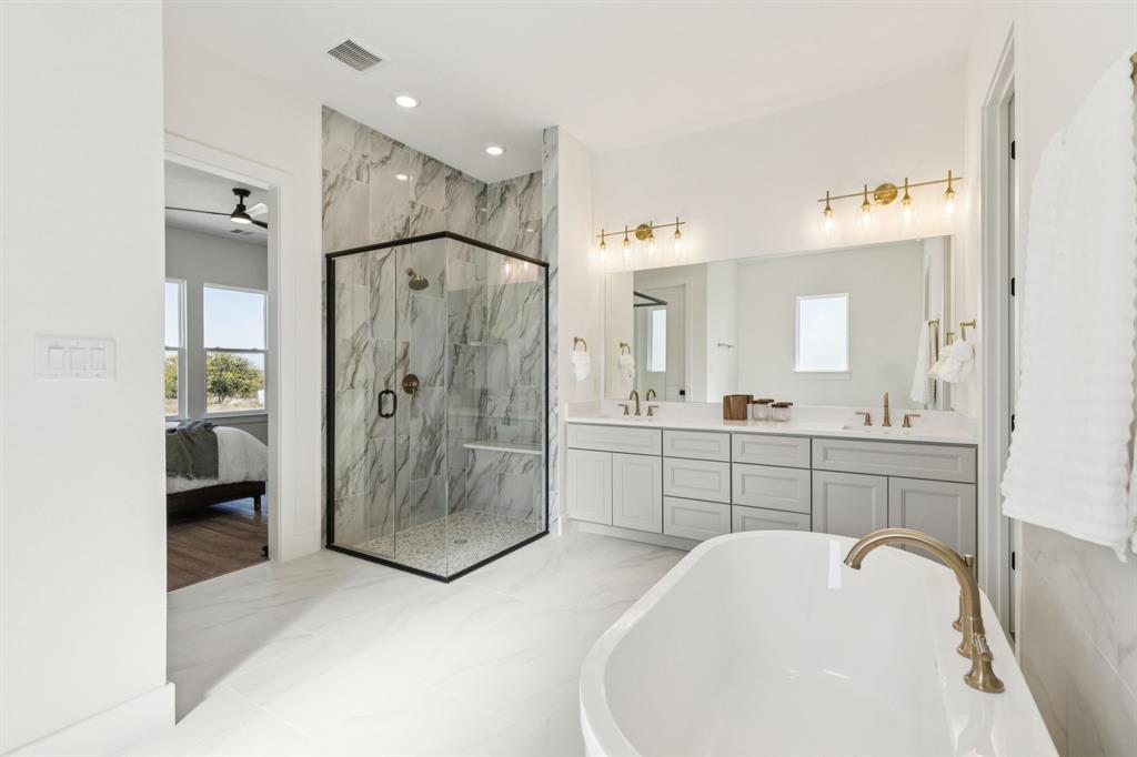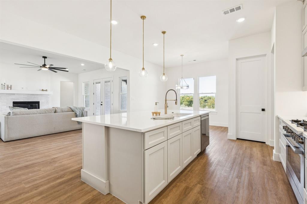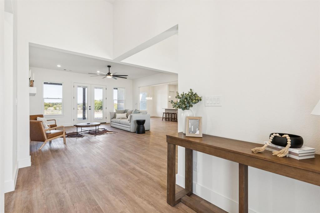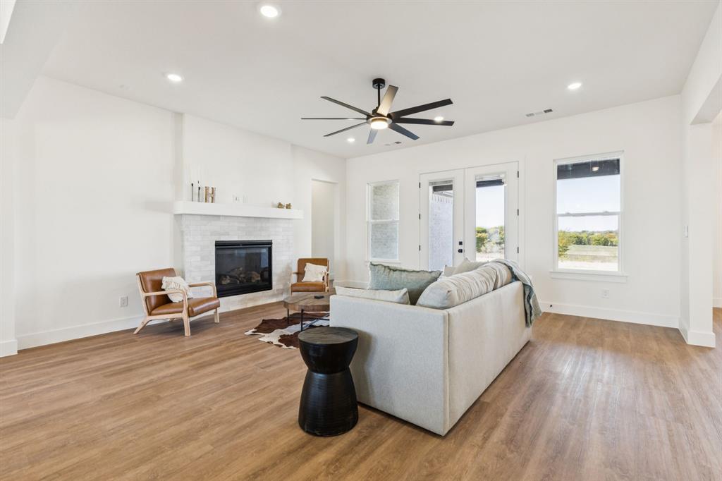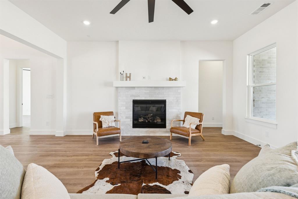 Elevated country living outside of city limits welcomes you to this exceptional 2-acre estate in one of Justin’s most sought-after luxury communities, where timeless Texas charm meets elevated modern design. Built by Homeroots Luxury Homes, this custom masterpiece blends architectural sophistication with warm, inviting interiors. Inside, you’ll find wide-plank wood flooring, soaring ceilings with handcrafted beams, and designer lighting throughout. The spacious layout includes 4 bedrooms, three full baths, a half bath, and spacious living spaces with additional room upstairs ideal for a dedicated office space, media, 5th bedroom, or game room option. Heart of the home is the gourmet kitchen, truly a chef’s dream, showcasing quartz Bianca Carrara countertops, sharp white shaker cabinetry, honed herringbone marble mosaic backsplash, Bosch stainless steel appliances, deep single basin sink, pendant lighting, & oversized island ideal for hosting. The living area features a striking fireplace showcasing honed marble tile and expansive views leading to the oversized covered patio—perfect for relaxing or entertaining in style. Primary suite is an oasis with deep soaking tub, stunning gold fixtures, and bianca carrara quartz. Step outside and enjoy the expansive acreage, complete with a detached shop, outdoor fireplace, and generous space with animal-friendly zoning, hobbies, or future enhancements. The extended 3-car garage adds storage and functionality. Additional highlights include a low 1.3% tax rate, animal-friendly property, and no HOA restrictions—offering the freedom to truly make this your own country oasis. Ideally located just minutes from Tanger Outlets, elevated shopping & dining, & just 35 minutes from DFW Airport this estate is more than just a home—it’s a lifestyle of serenity, sophistication, and space to live freely while having access to incredible amenities.
