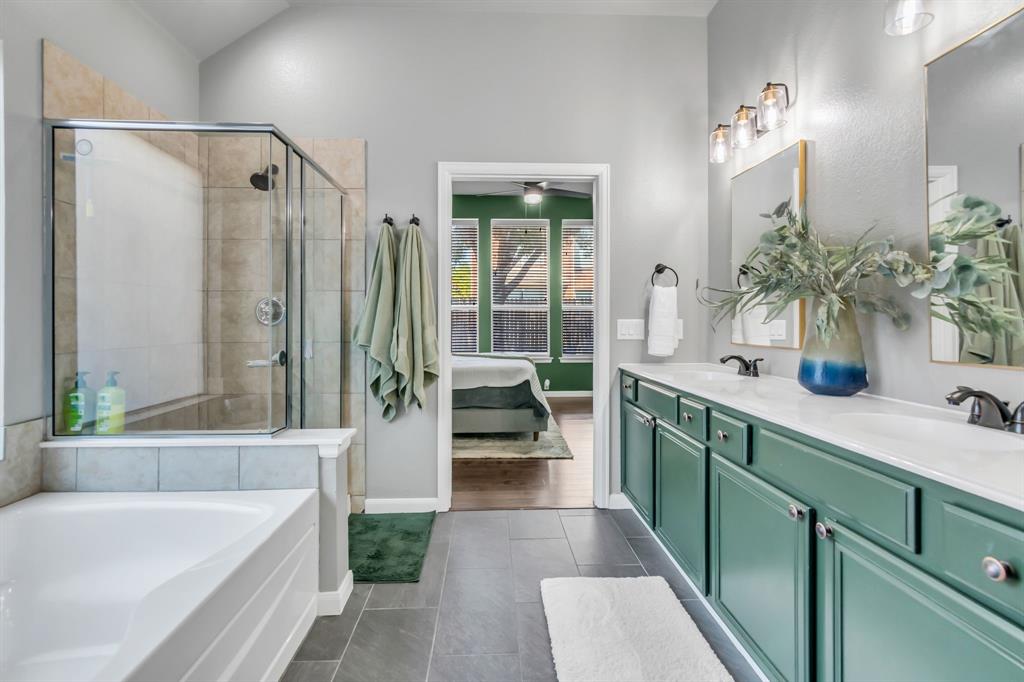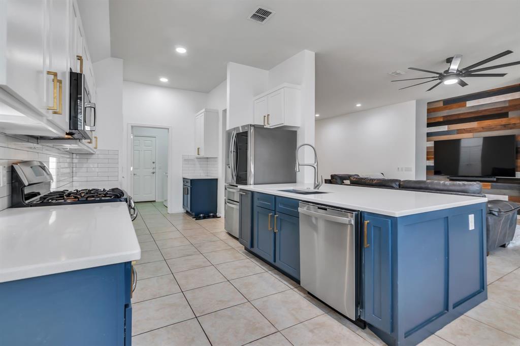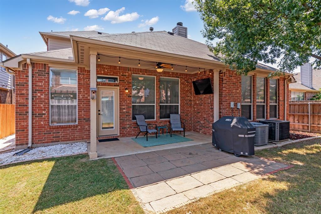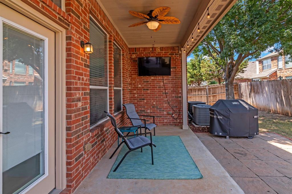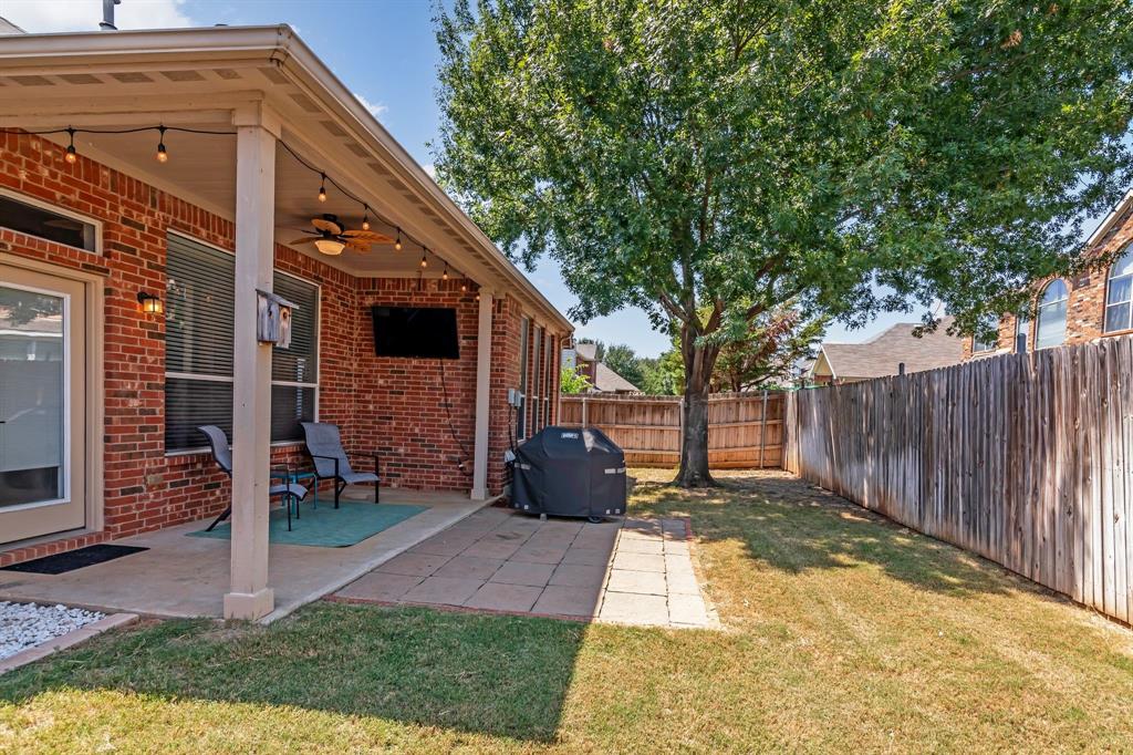 Its seamless integration with the dining and living areas creates an ideal setting for entertaining guests or enjoying quiet evenings at home. This home's outdoor offerings are equally impressive. The backyard invites you to unwind on a charming patio equipped for leisurely afternoons or evening gatherings, complete with a TV and extension for a grill or additional seating. Capacious and sophisticated, the two-car garage with epoxy floors, custom shelving adds convenience and charm to this delightful home. Bright, organized, and perfect for parking or projects. This exceptional Fort Worth property promises the perfect blend of style, comfort, and functionality. Refrigerator, Washer and Dryer to convey.