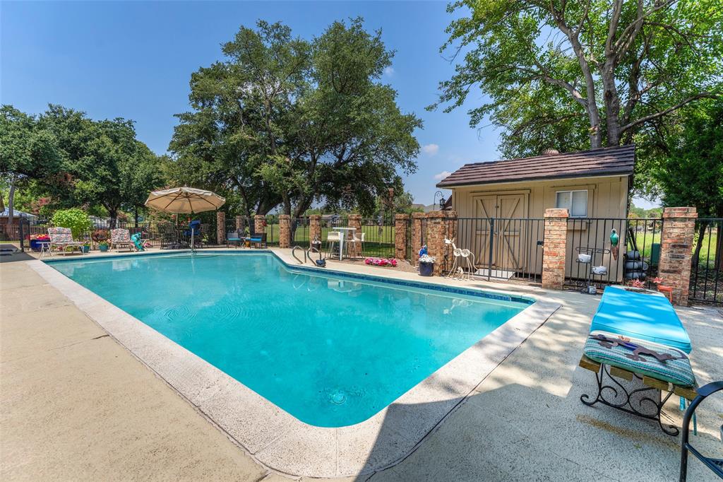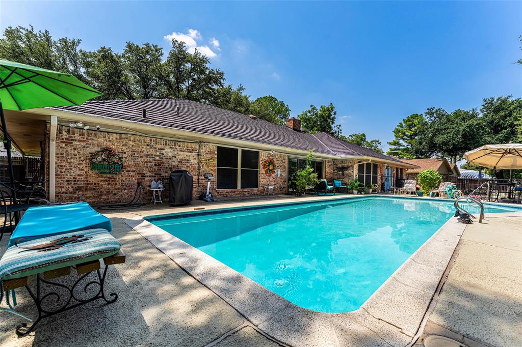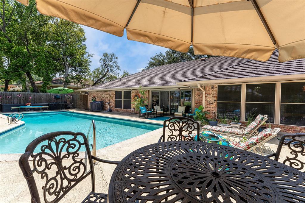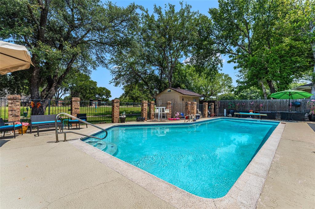 Step outside to your private backyard retreat, complete with a sparkling pool and patio area—ideal for relaxing and entertaining during warm Texas summers. Enjoy your cup of coffee in the mornings or special beverage in the evenings sitting on the enclosed back patio. The metal shingle roof adds tons of value to this home. Storage abounds all through this home and there is even a storage building outside by the pool. With its generous layout, modern updates, and prime location, this home truly has it all. Don’t miss your chance to make 5613 Oakmont Lane your next home!