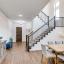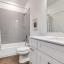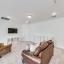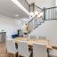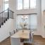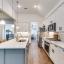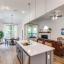 At the front of the home, a dedicated study with French doors provides a private workspace, while the formal dining area offers the perfect setting for gatherings. The heart of the home features an expansive chef’s kitchen complete with white shaker cabinets, quartz countertops, a herringbone backsplash, gas cooktop, and an oversized island with bar seating—flowing seamlessly into the breakfast nook and living room.