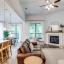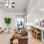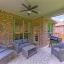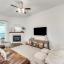 The living area is bathed in natural light, enhanced by a cozy fireplace with a wood mantel, views of the greenbelt, and direct access to an entertainer’s dream backyard.