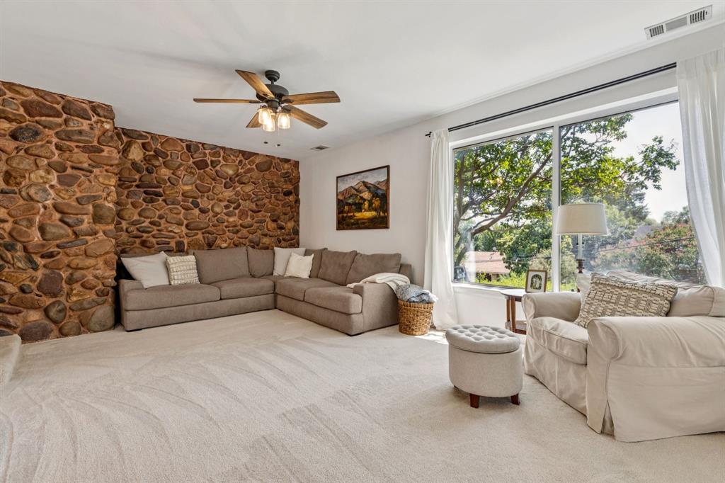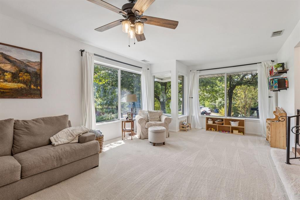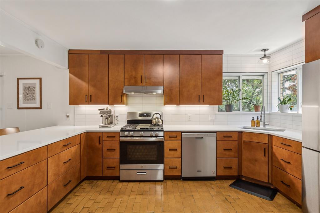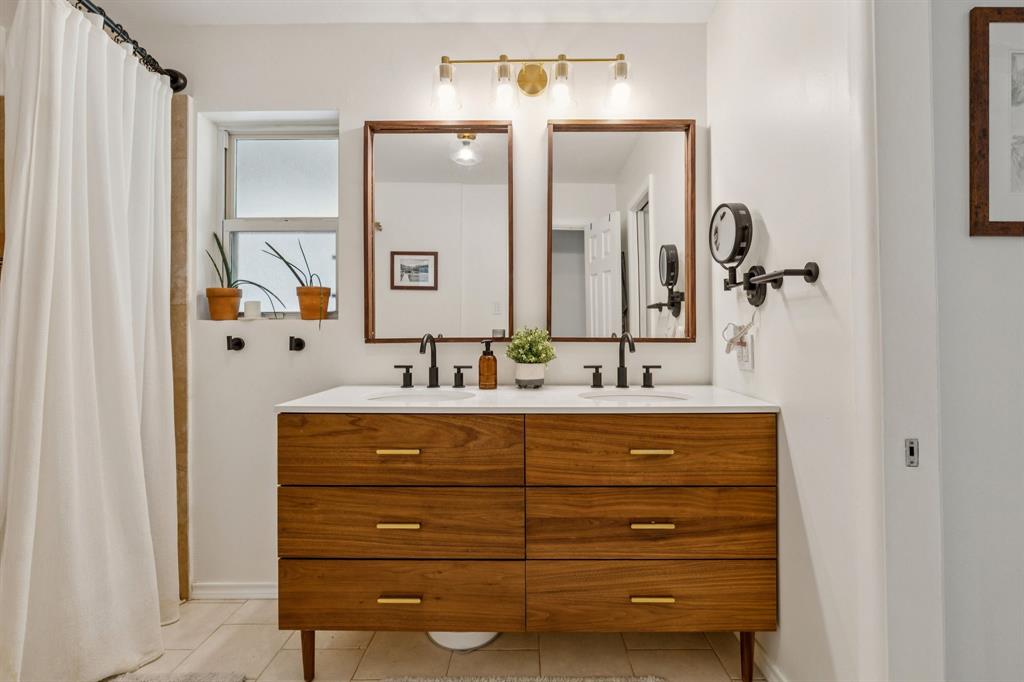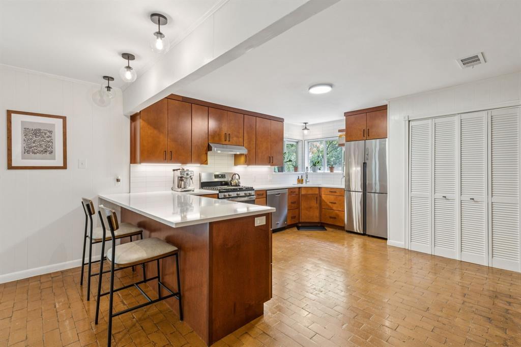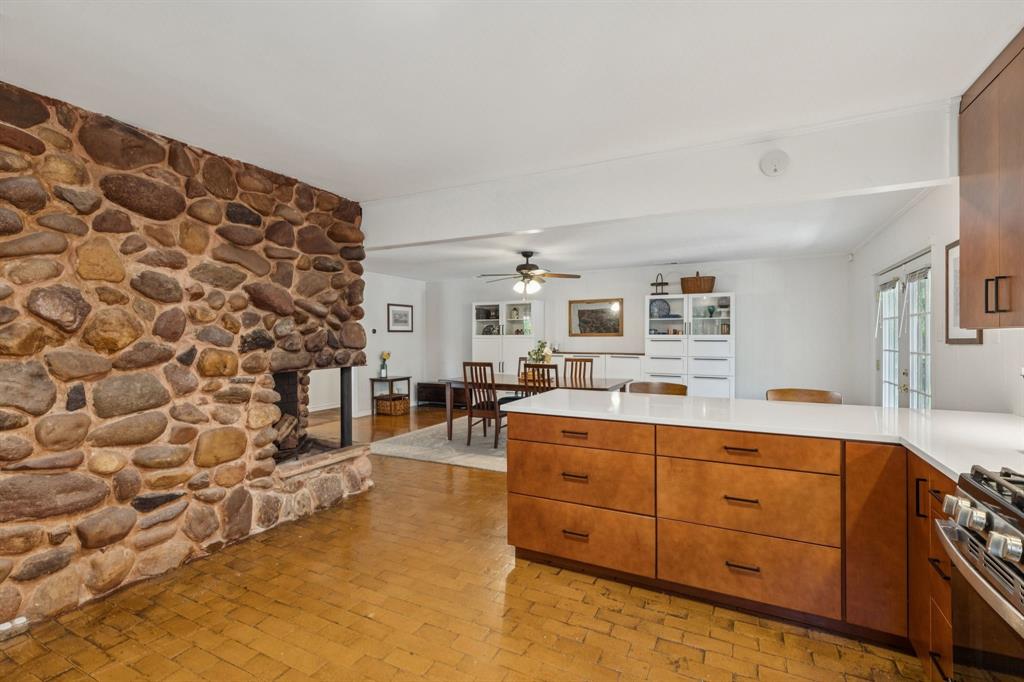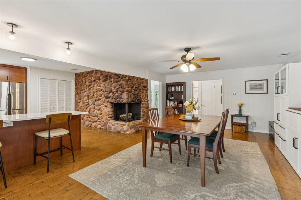 This Mid-Century Modern jewel, located in coveted Greenwood Terrace, perfectly meshes traditional character with contemporary finishes. As you enter, you're greeted by the home's original slate flooring and the sunken living area, which features a rare river rock wall and a corner wood-burning fireplace. Thoughtfully updated without compromising its classic charm, this home offers a flexible floor plan with ample space for entertaining. The kitchen is generously sized, large enough to accommodate a table and chairs, and features a bar with seating for four. Flooded with natural light, it opens to a spacious area that can serve as a dining room, second family room, or whatever your heart desires. Large windows fill the home with abundant sunlight and provide gorgeous views of the bluff overlooking the gardens, mature trees, and neighborhood. The oversized bedrooms—hard to find in this area—are complemented by a large bathroom with two entries: one from the hallway and another from the largest of the three bedrooms, creating the potential for two primary suites. Whether you're unwinding after a long day or hosting a barbecue, the outdoor space with its lush landscaping is sure to be a favorite. Conveniently situated in a highly desirable neighborhood, this home offers easy access to the vibrant entertainment of Dallas, amazing local restaurants, downtown, the DART rail, major highways, and many other amenities and attractions. With its prime location and stylish updates, this home combines convenience with timeless Mid-Century appeal.