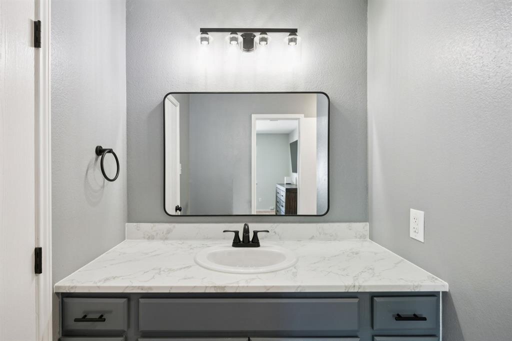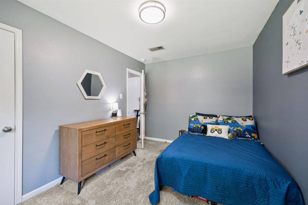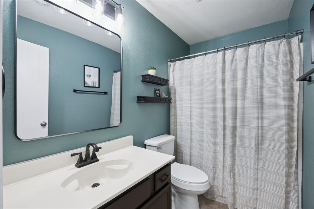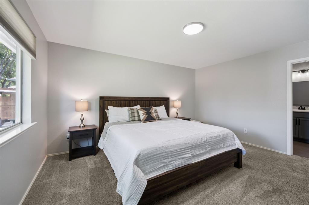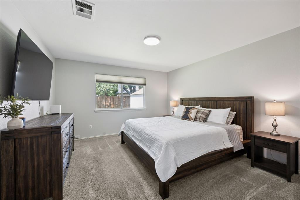 Each of the three bedrooms has been designed with relaxation in mind, offering plush carpeting and generous closet space. The master suite serves as a personal oasis with its en-suite bathroom featuring modern fittings, a large soaking tub, and a walk-in shower. The additional bathroom also boasts updated fixtures and a user-friendly layout, ensuring convenience for everyone.