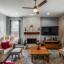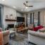 The professionally designed kitchen is a showstopper, featuring gorgeous Quartz countertops with a waterfall edge, solid white wood self-closing cabinets, and under-and-over LED cabinet lighting. It's a chef's delight with a new Samsung SmartThings gas range that includes Wi-Fi, no-preheat airfryer, and convection oven, along with a pot filler, vent hood, and a hidden appliance garage and coffee bar. The elegant design seamlessly connects to a spacious living area, anchored by a custom floor-to-ceiling fireplace made of white stack stone with a beautiful cedar ledge.