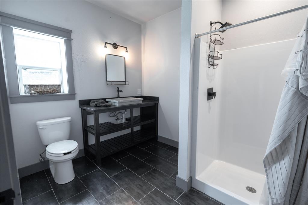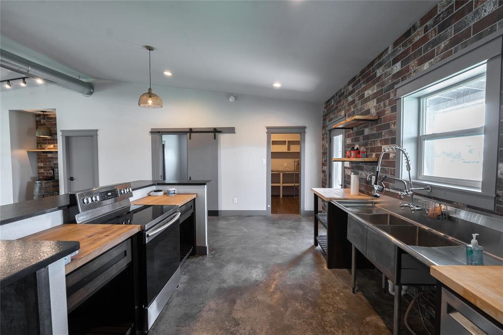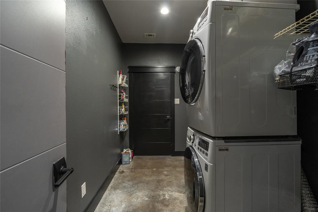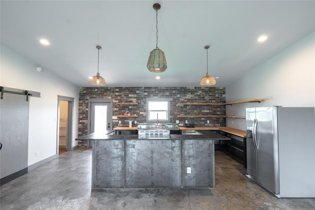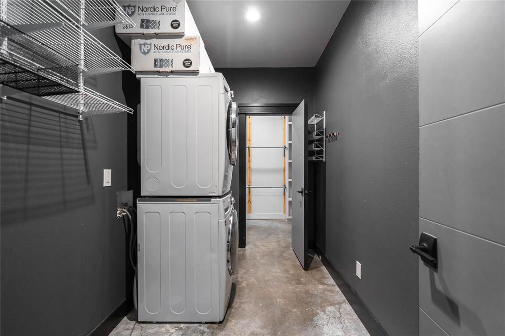 Step inside and be captivated by the industrial loft-inspired aesthetic, featuring soaring high ceilings, stylish recessed and track lighting, and a mix of stained concrete and tile flooring. The open-concept living space flows seamlessly into a well-appointed kitchen, where a central island with a breakfast bar creates a perfect hub for casual dining and entertaining. Modern conveniences include a like-new washer, dryer, and microwave.