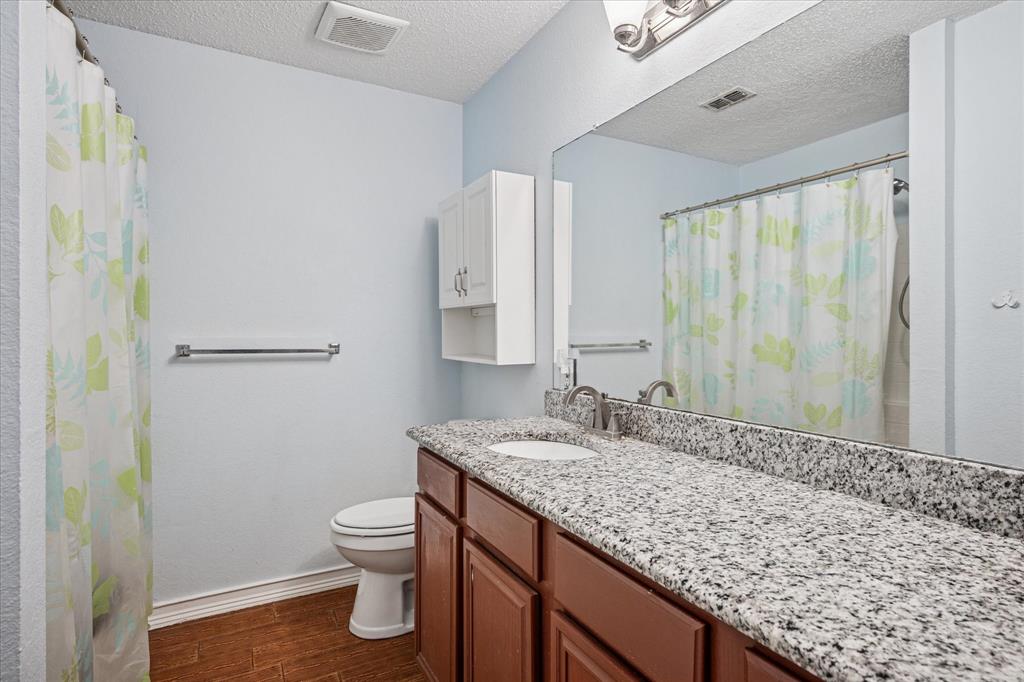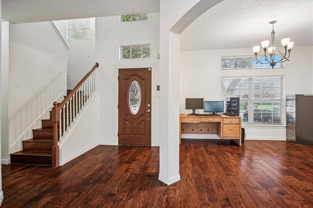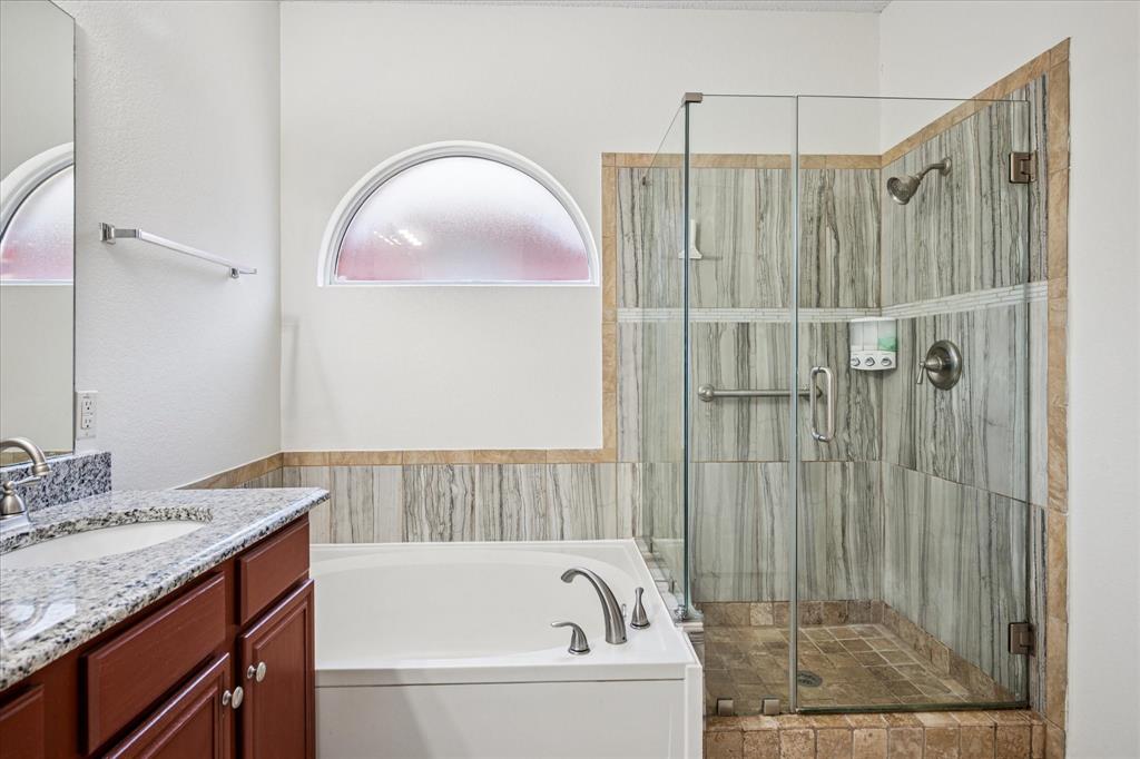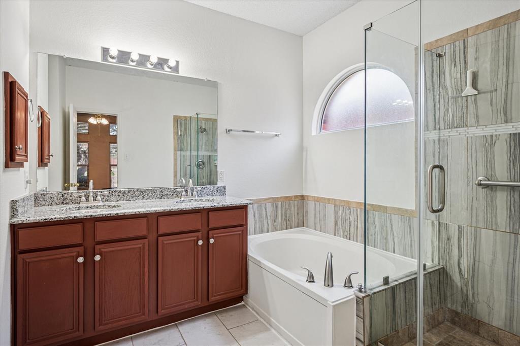Nicely maintained home with tons of space in a great neighborhood. This 5 bedroom, 3 full bathroom, 1 half bath home features engineered wood and ceramic tile throughout, granite counter tops in the kitchen and bathrooms, downstairs primary bedroom suite with frameless glass shower. Large game room and 4 bedrooms upstairs, perfect for a big family. The kitchen is open to a large living and breakfast area and the dining room is great for a home office. One upstairs bedroom has its own ensuite bathroom. Large backyard and walking distance to the community pool. Very close to Opal Lawrence Historic Park. Roof replaced in 2019.