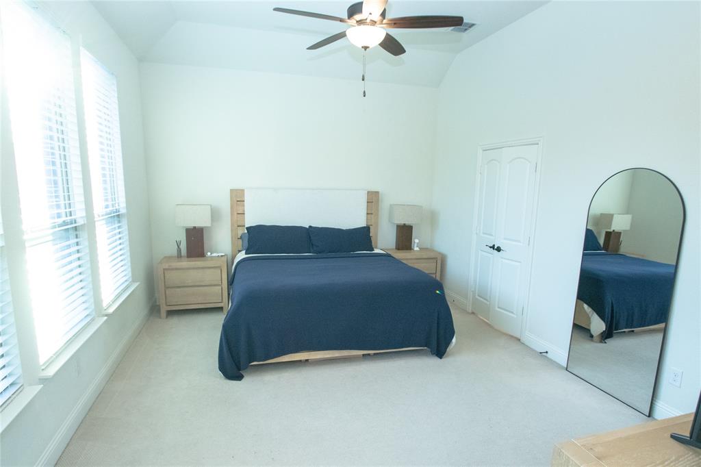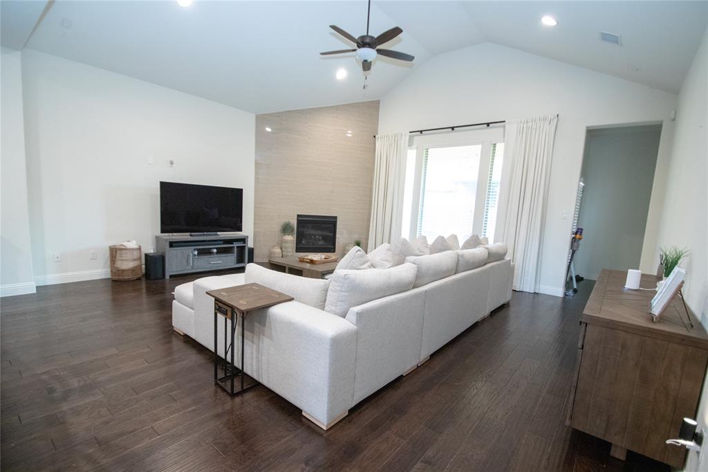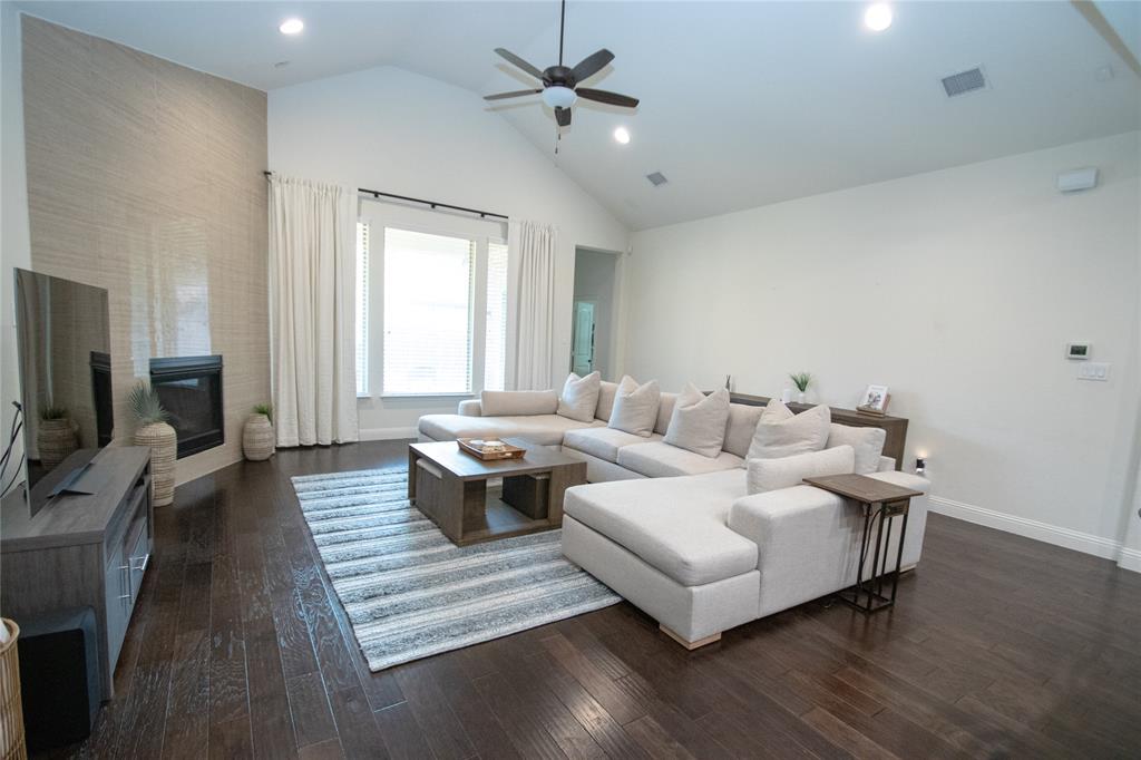 Residents of this master-planned community enjoy a wealth of amenities, including walking trails, fishing ponds, playgrounds, and a resort-style pool. The home is also conveniently located near major highways, shopping, dining, and the airport. The home includes a number of valuable upgrades, such as a standing shower in the guest bathroom, a fireplace with upgraded tiles, and a 5.1 surround sound system in the living room. For added convenience, the home comes with a washer, dryer, and refrigerator, and features an upgraded Cat 6 cable network, camera wiring, and a dedicated wiring system for Christmas lights.