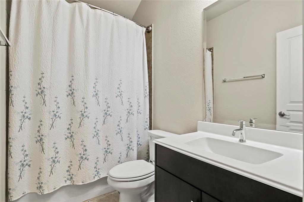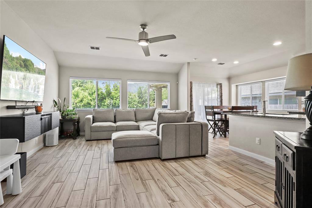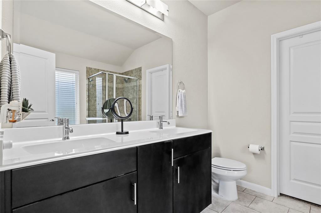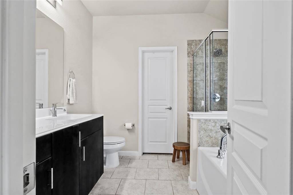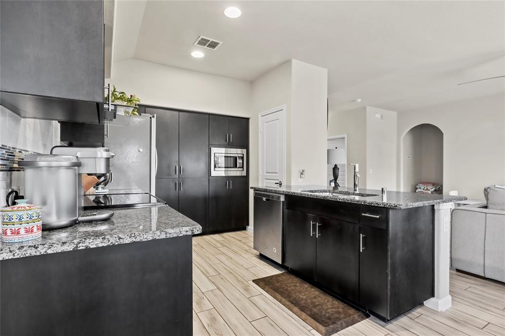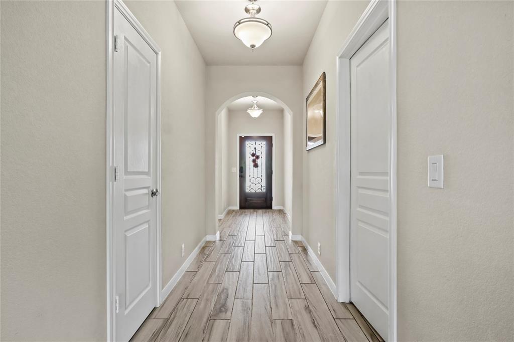 This exceptionally well-maintained home is filled with natural light and offers a spacious, inviting layout. The curb appeal is truly stunning, with a beautiful blend of stone and brick exterior and a professionally landscaped entrance that feels warm and welcoming. Inside, you'll find wood-look ceramic tile throughout the main living areas and a deluxe kitchen with custom cabinets, stainless steel appliances, granite countertops, and a stylish backsplash. The primary bathroom features dual sinks, a glass-enclosed shower, and a separate soaking tub with a decorative surround. Step out back to enjoy a generous yard and a covered patio, perfect for relaxing or entertaining. This home is move-in ready and a true standout.
