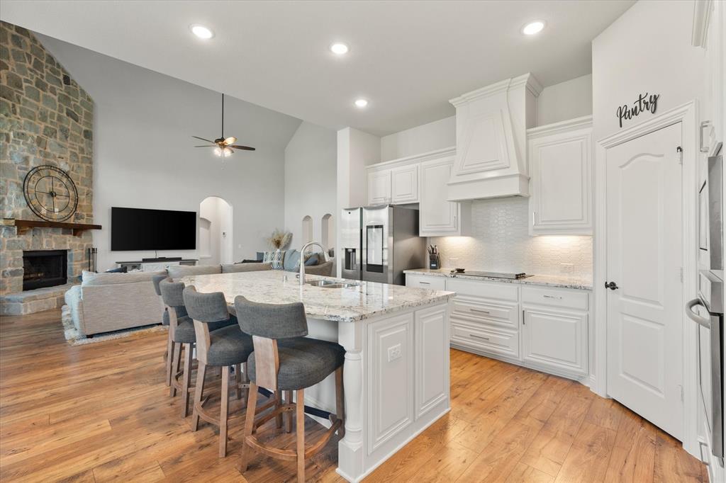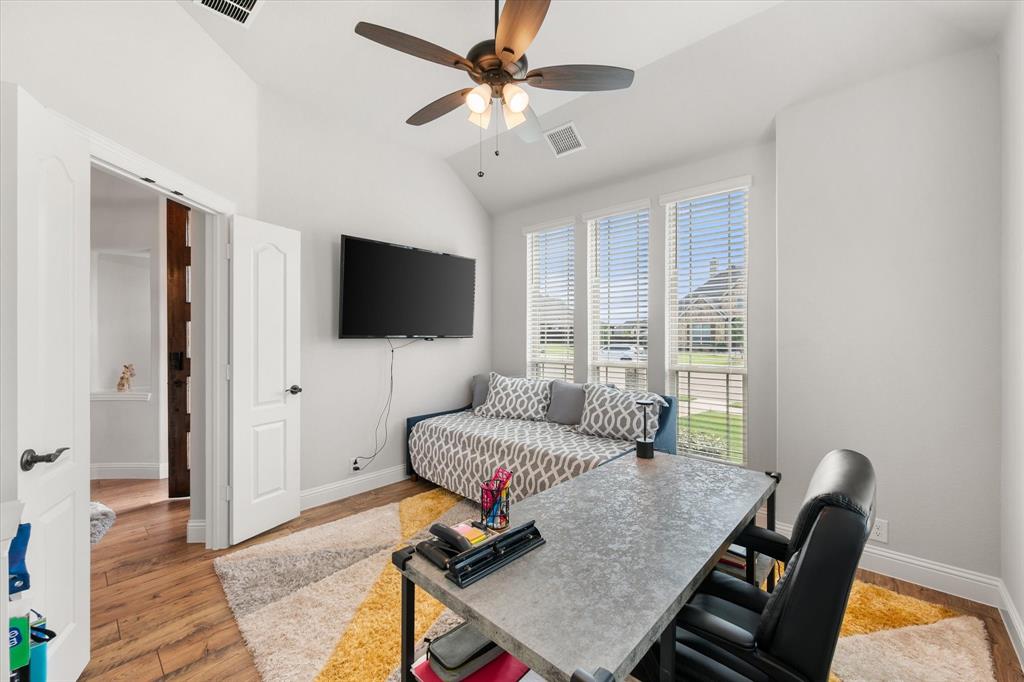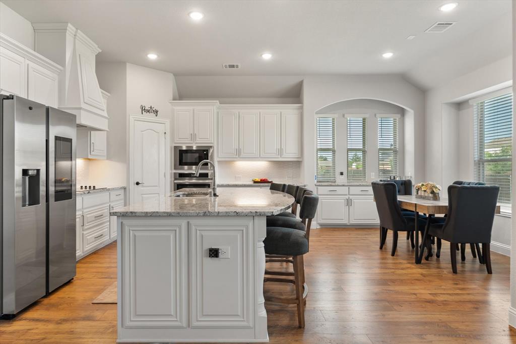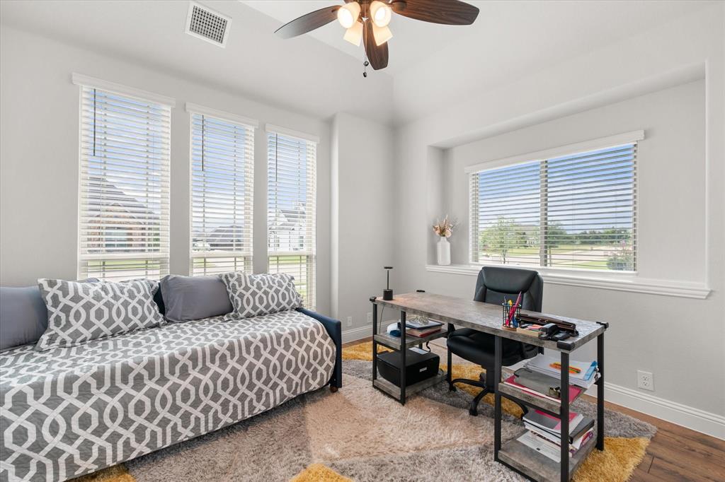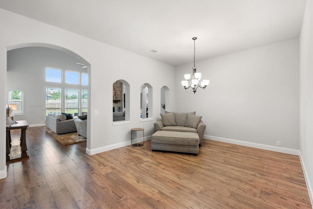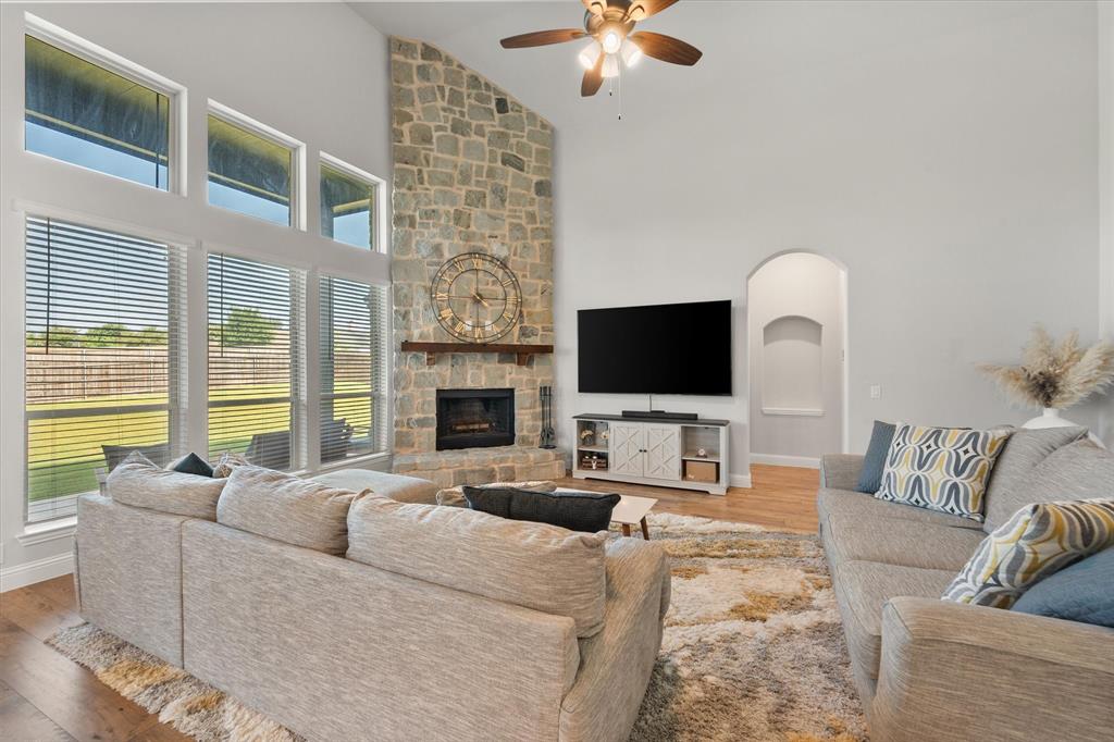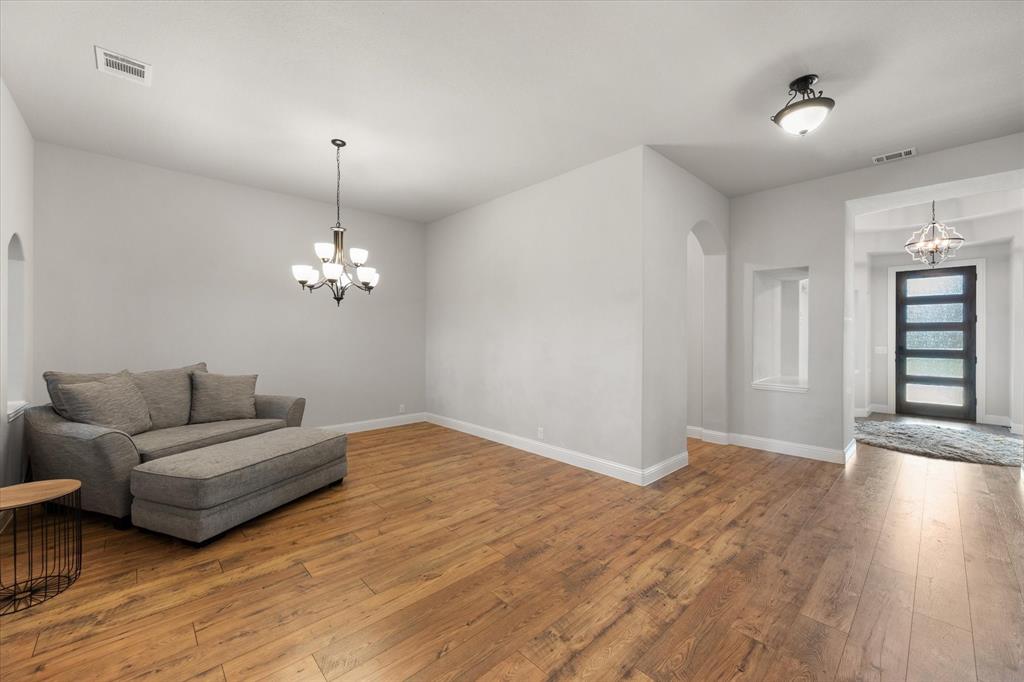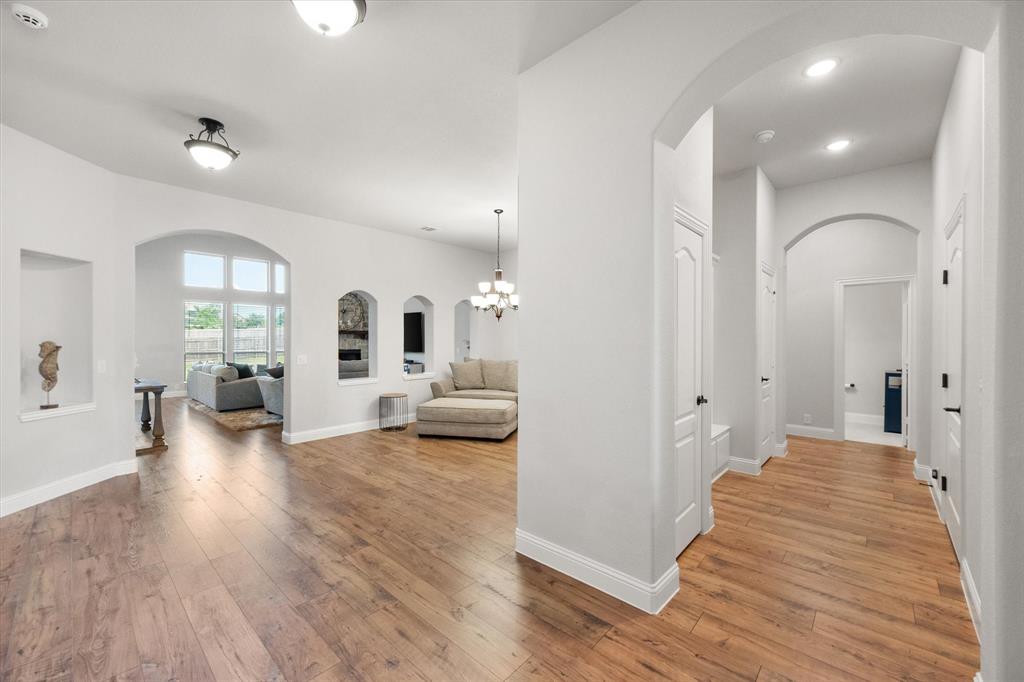 Priced to sell quickly! Gorgeous like-new home with so many upgrades; ready to move in and make your own! Boasting two garages, with room for 3 cars and a nearly HALF-ACRE lot, on an extra wide and peaceful street. As soon as you enter, you will be blown away by the beautiful open layout, stylish wood flooring, built in mud room and so many impressive architectural details. This unique single story floorplan feels like a two story with its height and grandeur, but has everything you need on one amazing level, including two HVAC systems! The sunlight-filled living room is cozy and inviting, with soaring high ceilings you have to see to believe. Add in tall windows and a floor to ceiling stone fireplace that make the home feel like a spacious retreat. The deluxe kitchen is impressive and truly a chef's dream with upgraded countertops, custom cabinets and built-ins galore. Entertaining is a breeze with a large breakfast nook and extra seating on the extended island. Large flex area can be used as a formal dining room, bonus sitting room or even a game area. The stunning primary suite has a luxurious five piece bath with separate vanities and walk in closet. The other three bedrooms and full bath are on the other side of the home, offering peace and privacy. The front bedroom is the perfect setup for a home office. Don't forget about the glorious and secluded .46 acre backyard, level and ready for the pool of your dreams, with wood privacy fence and sky high extended covered patio that is sure to impress. Come see this lovingly maintained home that still feels brand new, and enjoy the serene neighborhood with desirable Midlothian ISD schools, just minutes from all the town's amenities and highways!