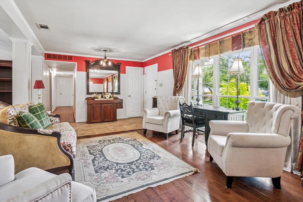 Perched upon an elevated lot overlooking the middle of the block is Quaint builder's home with granite surfaces, wood flooring and an antique cabinet for the master lavatory. 4th bedroom is separate and close to the kitchen, perfect for overnight visitors or family members that want their space. Additionally, there is a 2nd pantry in the utility room. Dishwasher ~ 1 year old, new AC units inside and out installed 8-8-25, with transferable 5 year warranty. The back yard features a patio with a covered arbor and a Workshop~She Shed that could be converted to a painting studio, office or playhouse along with mature flower and plant gardens in all corners. Richardson Schools, close to major retail, office in North Dallas. Located between Coit and Hillcrest.