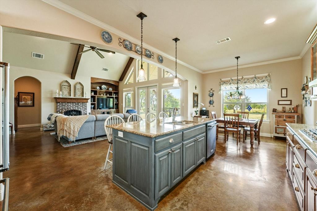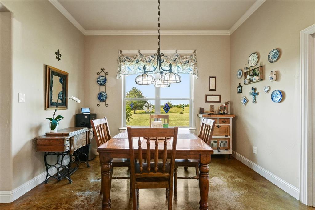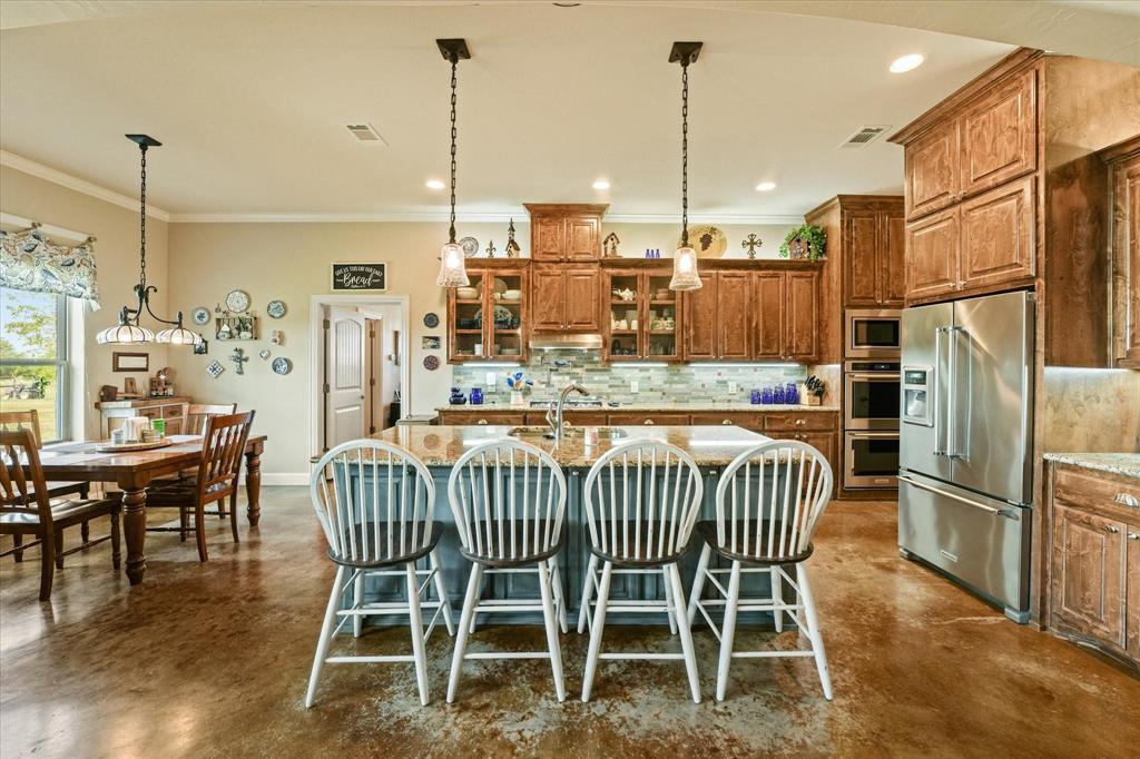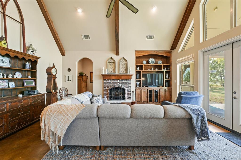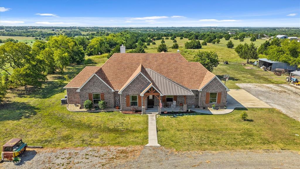 This stunning 3,142+ sq. ft. brick custom home with 4 bedrooms and 3 full bathrooms offers timeless design, modern comfort, and the peace of country living all with easy access to nearby cities. Featuring an attached 2-car garage and a spacious covered back porch, this property is perfect for enjoying the breathtaking sunrises and sunsets over your own 10+ acres. Inside, you’ll find custom cabinets, quality craftsmanship, and abundant windows that flood the home with natural light. The thoughtful layout includes a bonus room upstairs and another bonus room downstairs, providing flexible space for an office, game room, or guest area. Outdoors, the property offers a shop and an RV-covered parking area with hookups, making it ideal for hobbyists, storage, or travelers. The land is well-suited for agricultural use if the new owners desire, and the open spaces provide endless possibilities. Located near major roadways, this home combines the beauty of rural life with the convenience of quick trips into town.