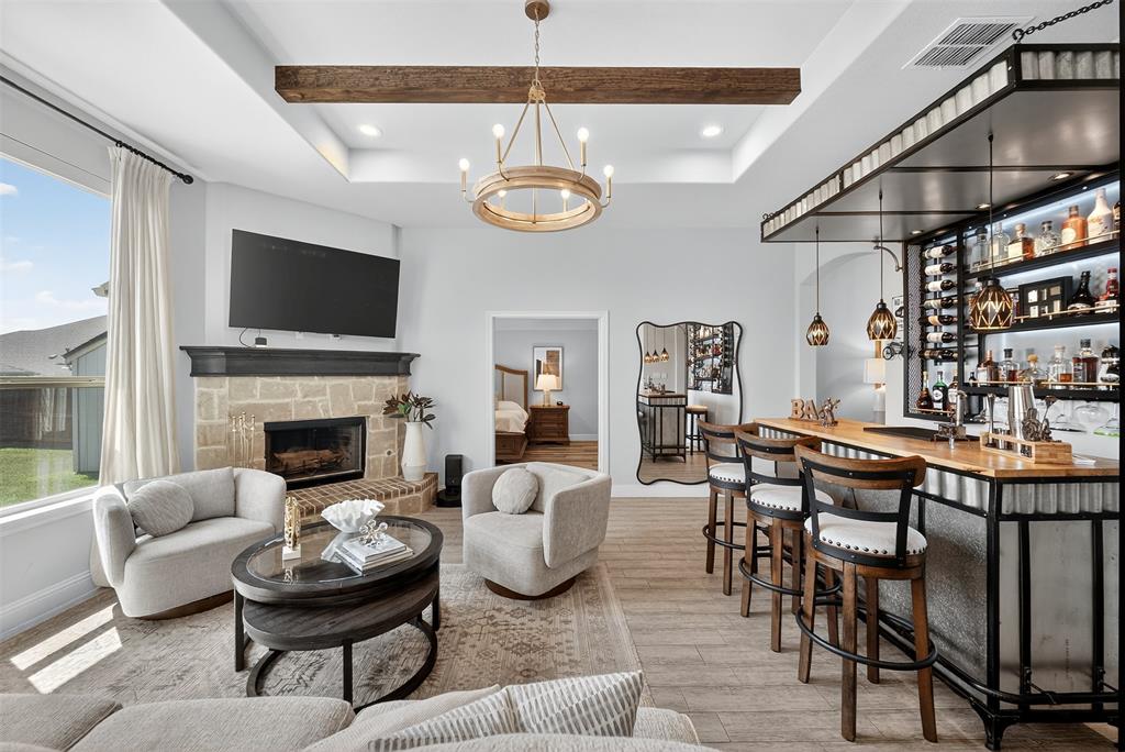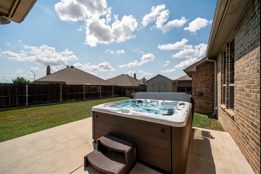 Welcome to this meticulously maintained home—better than new! Situated on an oversized lot in the heart of Saginaw, this stunning property offers luxury, functionality, and comfort throughout. The no-carpet interior delivers a sleek, low-maintenance lifestyle, while the expanded outdoor patio is perfect for relaxing or entertaining—featuring an extended deck, a dual fireplace (wood-burning or gas), and a large 6-person Jacuzzi hot tub with built-in lighting for the ultimate evening retreat. The home’s exterior is equally impressive, with professionally designed landscaping in the front yard and profesionally installed outdoor lighting in the front of the house. On the right side of the home, you'll find a spacious storage shed—ideal for storing gardening tools, equipment, and outdoor supplies. Inside, the open-concept floor plan is made for both everyday living and entertaining. It features a custom-made bar—a true statement piece that’s negotiable with the sale—and remote-controlled curtains in both the living room and the primary suite for added convenience and sophistication. The spacious primary suite includes a spa-like en-suite bath and a generous layout, perfect for unwinding in comfort. Car enthusiasts will love the oversized 3-car garage, with epoxy flooring and custom cabinetry—easily fitting a Suburban, a Jeep, and more. With beautiful curb appeal, premium finishes, this move-in ready home is a rare gem in Saginaw. Don’t miss your chance—schedule your private tour today!
