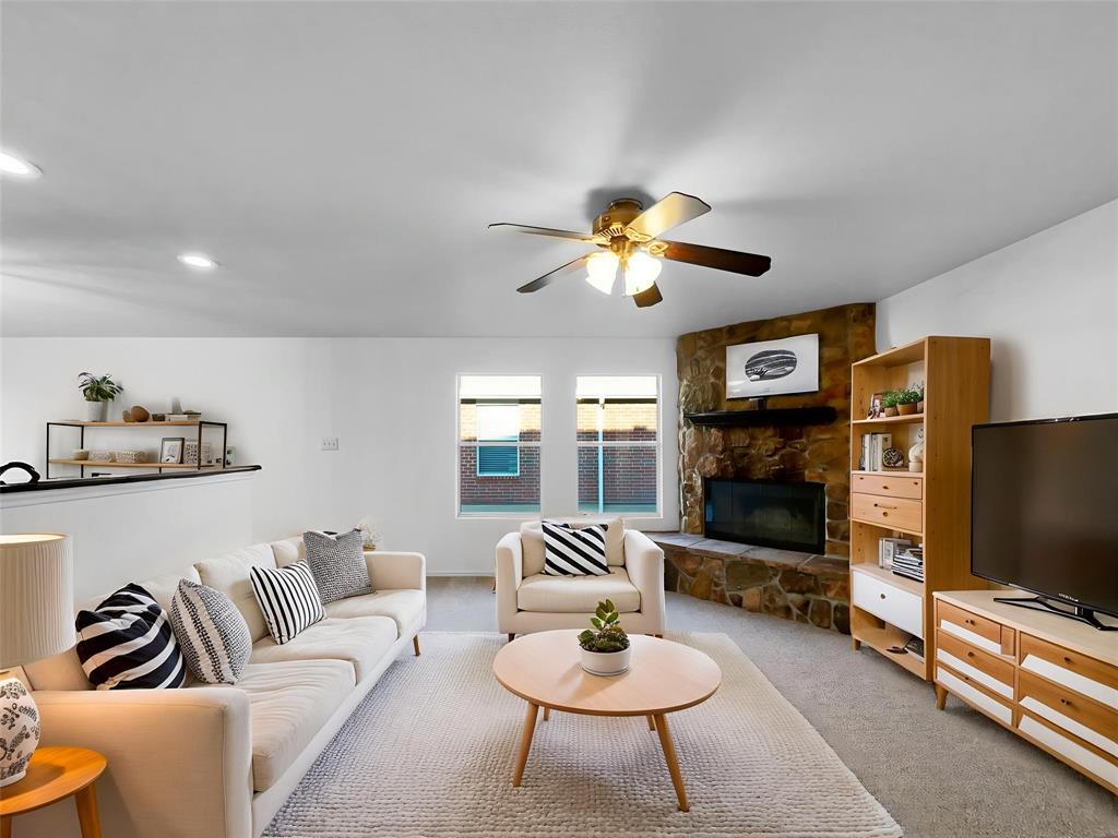 Welcome to your dream home! This property boasts a spacious deck perfect for outdoor entertaining. The fenced-in backyard provides privacy and security. Inside, the kitchen is equipped with all stainless steel appliances and an accent backsplash that adds a touch of elegance. The primary bathroom features double sinks, a separate tub, and shower for a spa-like experience. The neutral color paint scheme throughout the home, along with fresh interior paint, creates a calming ambiance. Partial flooring replacement ensures the home is move-in ready. Cozy up next to the fireplace on cooler nights. This home is a must-see! This home has been virtually staged to illustrate its potential.. 100-Day Home Warranty coverage available at closing