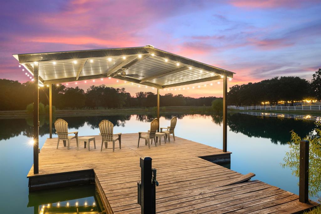 Other improvements throughout the ranch include 4 cross-fenced pastures with automatic watering systems and a separate pasture that is barbed wire fenced for cattle. A professionally lit 120x240 riding arena provides the perfect space for safe, comfortable night-time riding, training, and events. There are three brand new 12x24 stalls located near the arena with their own private runs. The workshop conveniently located next to the barn allows for extra work space, tack room, tools, and storage. Two well-maintained ponds sit directly in the center of the property that is easily accessible from all areas, plus another pond in the back! Two ponds are roughly 20’ deep and are excellent for fishing or peaceful reflection. The backyard features a lighted, turf playground, offering kids a safe, fun play space just far enough from the home for added comfort.