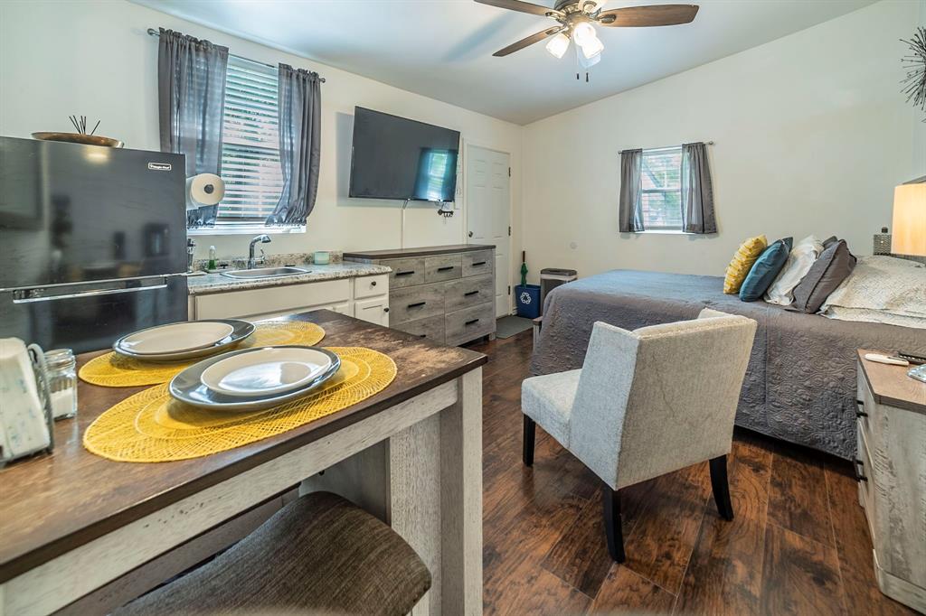 Charming Home with Income-Producing Guest Unit! Built by the Air Force as part of base housing, this home is as solid as they come! The main house features 2 bedrooms, 1 bathroom, original wood floors, a bright and cozy living area, and a functional kitchen with ample storage. Step outside to discover a spacious backyard with mature shade trees, multiple decks, and a patio—ideal for entertaining. The property also includes a separate Accessory Dwelling Unit (ADU) that adds a third bedroom and full bath, complete with its own kitchenette, private entry, and fully furnished for immediate use. Whether used for guests, extended family, or as an income-producing rental, this versatile space is a rare find. Additional perks include a detached laundry room with office space, a storage shed, and a convenient location close to shopping, dining, and major highways. This is a unique opportunity to own a well-built home with extra income potential—opportunities like this are hard to duplicate.