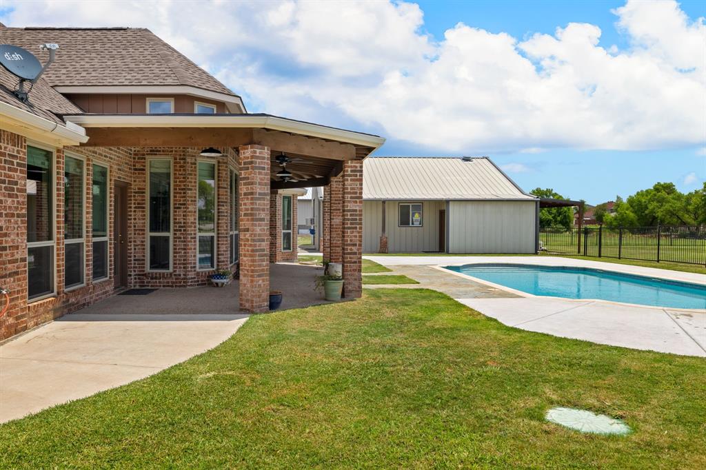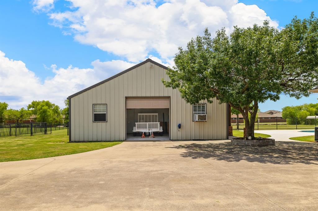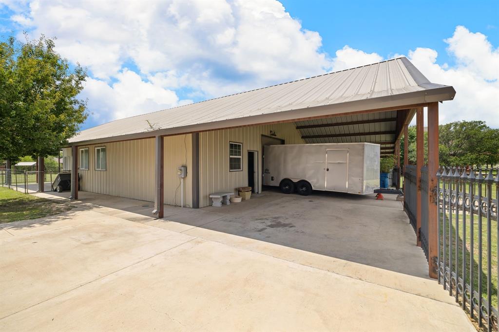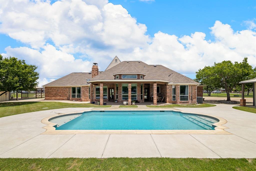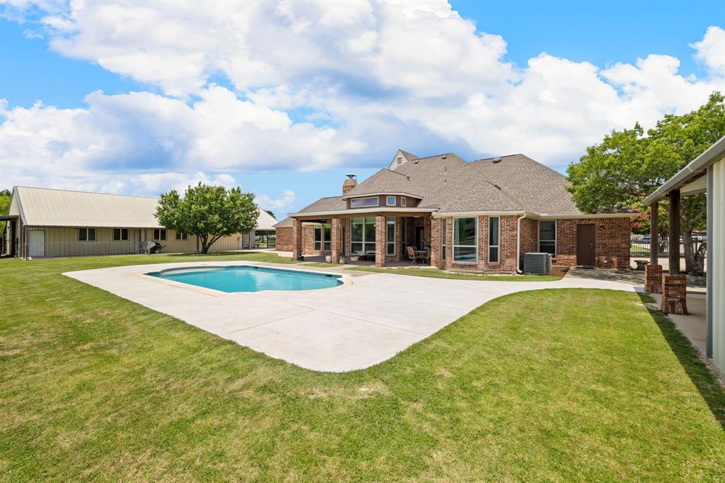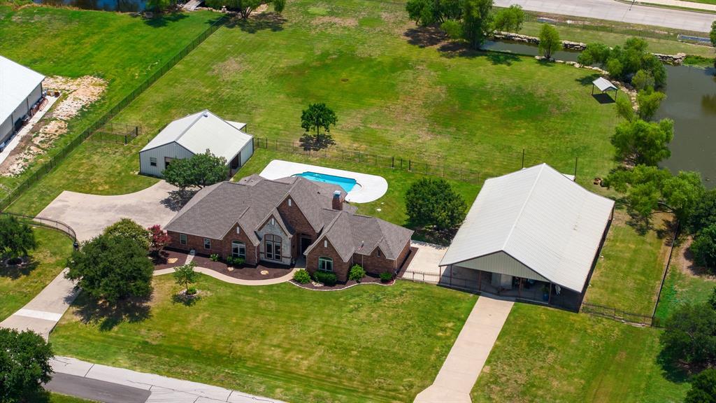 Welcome to a versatile estate in unincorporated Tarrant County. Completely exempt from city regulations, this property lets you build, expand, and operate with total freedom. Spread across generous acreage, it includes three multi-use structures offering maximum flexibility for personal or commercial ventures. The spacious main house greets you with an open floor plan, abundant natural light, spacious chef's kitchen, and soaring ceilings. Multiple ensuite bedrooms provide private retreats, and the versatile upstairs game room or media room features an extra bedroom and half bath—perfect for hosting guests or creating an at-home entertainment experience. West of the main house, a metal building on a poured concrete slab, with full electrical, plumbing, new HVAC system, a mezzanine loft for storage or office use, and a reinforced driveway engineered to support heavy loads. Additionally, a second metal building East of main house also offers electrical service, a vast hay loft storing several bales, an equine stable with stalls a tack area, and a dedicated workshop space ready for tools and crafts. Elegant wrought-iron cross fencing enclose the property, and solar-powered gates at both front and rear entrances ensure security, privacy, and effortless entry. Outdoor living is equally impressive, with a recently resurfaced play pool nestled just behind the main house’s well-appointed outdoor living space, complete with ceiling fans and recently installed lighting. Step around the corner to a stocked pond lined with natural stone banks, where bass and bluegill swim in fresh waters. From weekend pool parties to serene fishing mornings, this property delivers unmatched lifestyle amenities. Whether you envision running a business, raising livestock, or expanding with additional buildings, this Saginaw property has room to roam and no restrictions standing in your way. Take advantage of the rare opportunity to own a self-sufficient compound where work and play converge.