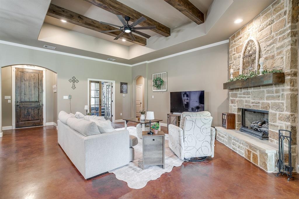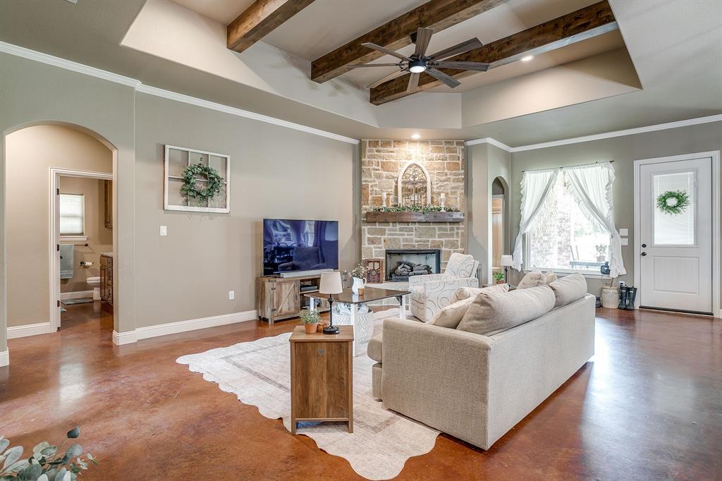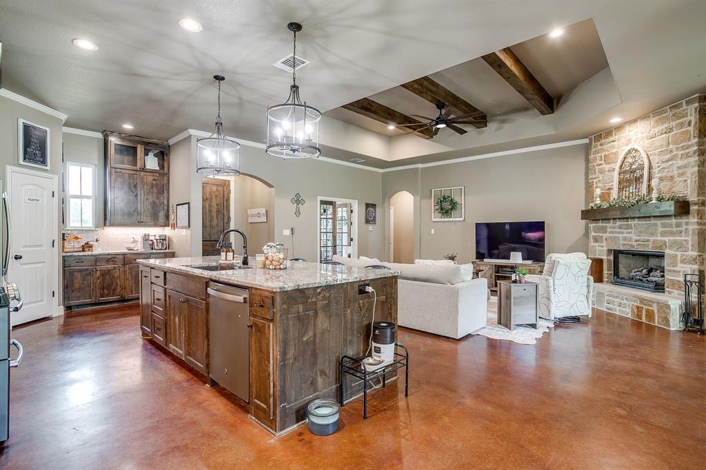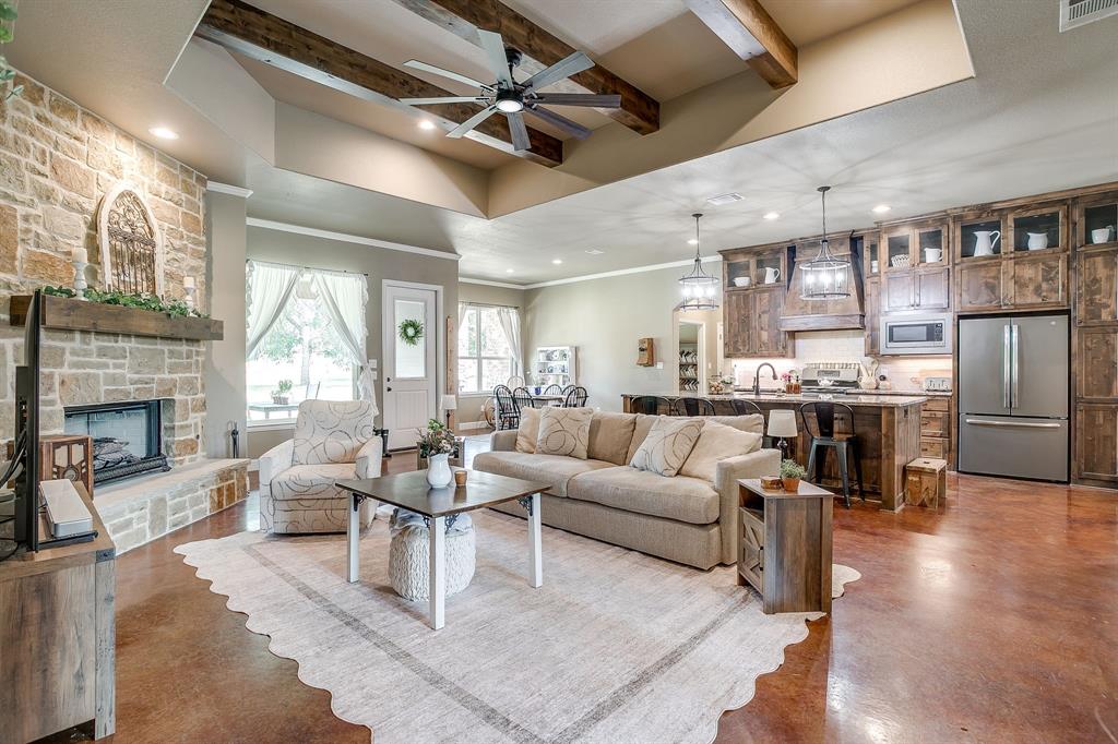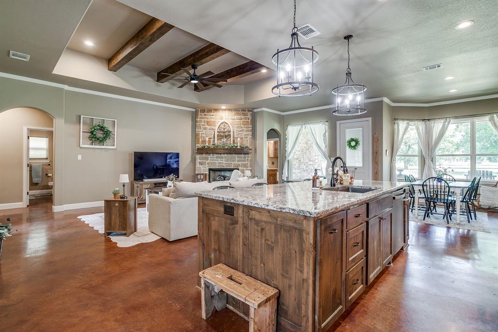 Charming 4 Bedroom, 3 full bath Home on 2 Acres. Discover this beautiful home nestled on 2.02 acres of peaceful countryside, with durable pipe fencing. Designed with comfort and function in mind, this home features an open-concept layout that seamlessly connects the kitchen, living, and dining areas—perfect for both entertaining and everyday living. The heart of the home is the chef’s kitchen, boasting a large granite island, stainless steel appliances, a gas stove, and ample counter space. Relax in the spacious living area, complete with a stunning stone fireplace and gas logs, creating a warm and inviting ambiance. Retreat to the luxurious primary suite featuring dual sinks with separate vanities, a walk-in shower, and a garden tub for the ultimate spa-like experience. Additional features include a durable metal roof, spray foam attic insulation, and a 3-car garage for all your storage needs. Enjoy modern conveniences like fiber optic high-speed internet, plus charming extras like a chicken coop for fresh eggs and a peaceful rural lifestyle. Located in neighborhood with a community playground and exclusive access to the Brazos River, this home offers the perfect blend of country living and modern amenities.