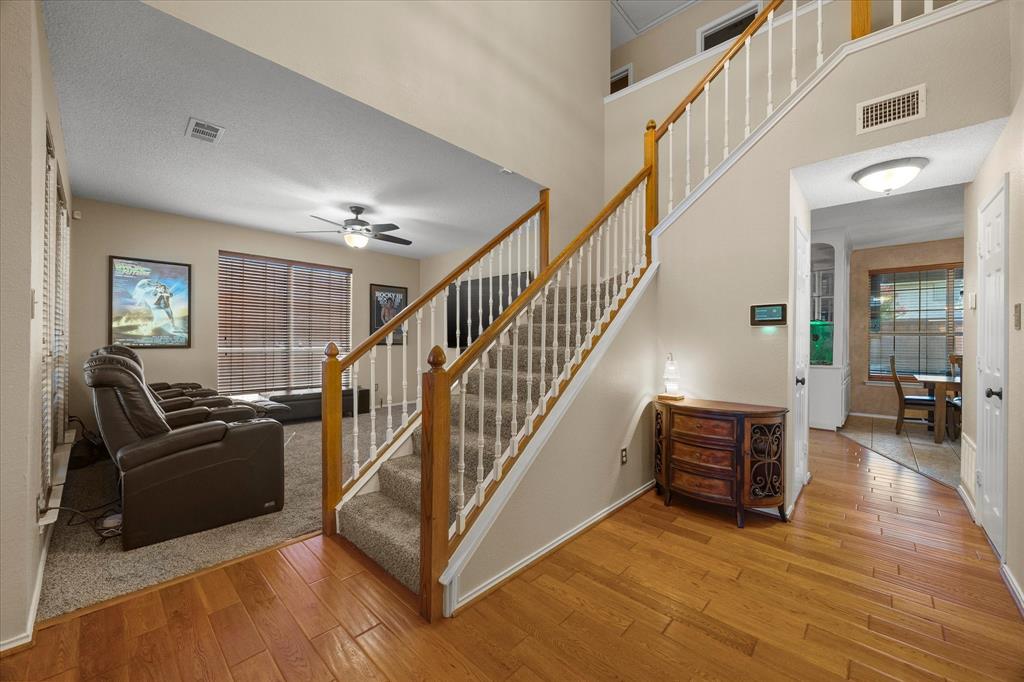 CURB APPEAL! You will fall in love, upon drive up, with the beautifully landscaped yard. One owner home, very well taken care of 3 bedroom, 2.5 bath, 2 living rooms, 2 dining rooms, & a 2 car garage. Living room with wood flooring & gas log Fireplace. Kitchen with granite, stainless appliances, island & tile flooring. Butlers pantry between kitchen and dining room. Breakfast area with built in cabinets. 2nd living can be used as a media room. All bedrooms are upstairs. Large primary bedroom. Primary bath has 2 vanities, garden tub, separate shower & walk in closet. 4th bedroom has been converted to a beautiful custom closet but can be turned back into a bedroom. BACKYARD OASIS! Covered patio, Pergola with hot tub, basketball court, 8 ft board on board fence, & landscaping. Extra parking next to driveway for a boat or RV. You do not want to miss out on this amazing home...