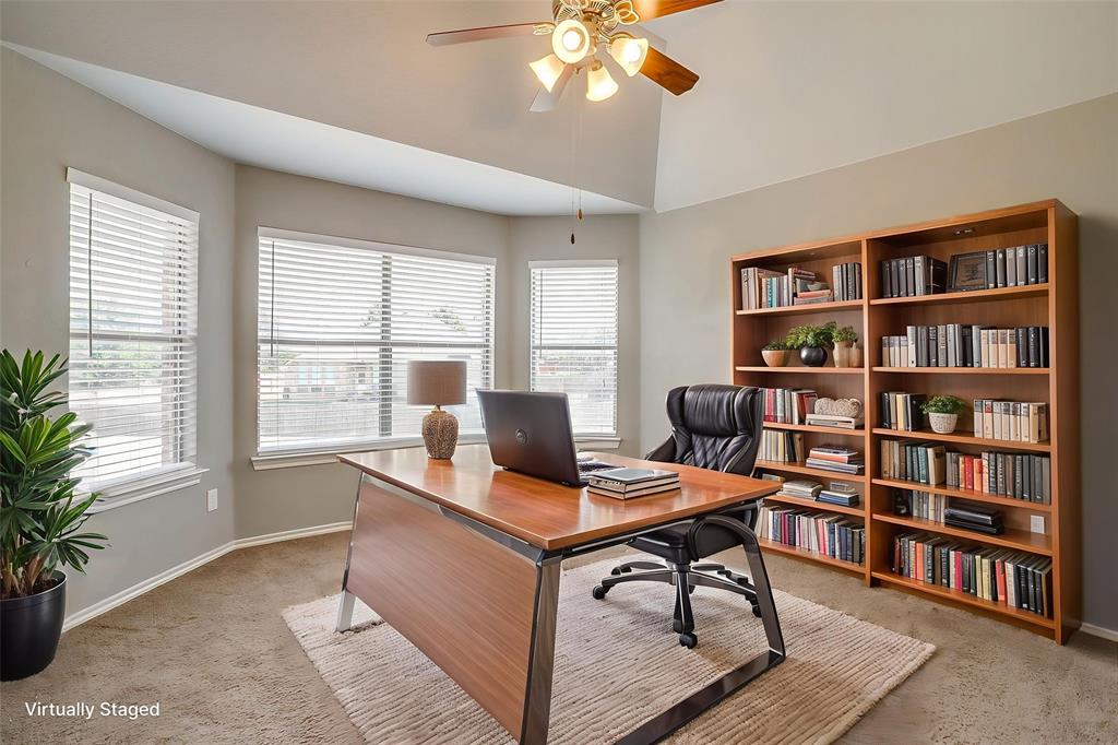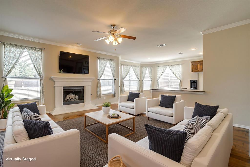 Welcome to your dream home! This stunning 4-bedroom property offers an inviting blend of elegance and comfort, perfect for families of all sizes. As you approach, you'll be greeted by a beautifully landscaped front yard that adds a charming touch to the home's curb appeal. The entrance opens into a grand formal living room, providing an ideal space for entertaining guests or enjoying quiet evenings. Adjacent to this is a formal dining room, perfect for hosting dinner parties and holiday gatherings. The heart of the home is the cozy living room, featuring a wood-burning fireplace that creates a warm and inviting atmosphere. This space seamlessly flows into an open-concept kitchen and dining area, making it ideal for family interactions and entertaining. he kitchen is a chef's delight, boasting an island with granite countertops, built-in appliances, and an eat-in area for casual dining. Whether you're preparing a quick breakfast or a gourmet meal, this kitchen is equipped to handle all your culinary needs. The primary bedroom is conveniently located on the main floor, offering a private retreat with an ensuite bath. It features dual sinks, a walk-in shower, and a luxurious garden tub, providing a spa-like experience in the comfort of your own home. Upstairs, you'll find three additional bedrooms, each offering ample space and natural light. A full bathroom serves these bedrooms, ensuring comfort and convenience for family members and guests. The upper level also includes a versatile flex space, perfect for use as a family room, game room, or play area. Step outside to discover a spacious backyard, ideal for outdoor activities, gardening, or simply relaxing in the fresh air. The community enhances your lifestyle with access to a sparkling pool and a playground, providing endless opportunities for recreation and relaxation.