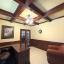The stately built-in-study features a coffered ceiling, wainscoting panels, custom built-ins, and true French doors with privacy lock - perfect for remote work.